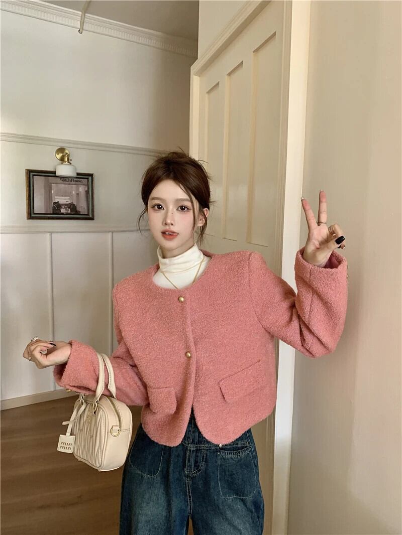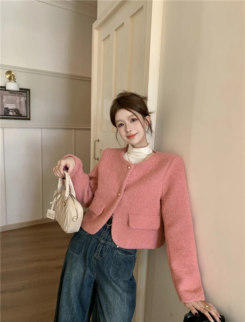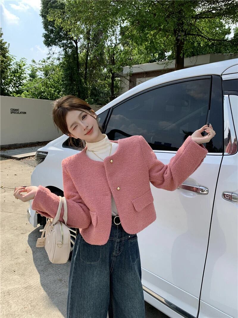 香りよいショートスタイル人気ピンク白衣レディース秋冬ジャケットアウター ホワイト オータム 秋物 ウィンター 冬物
