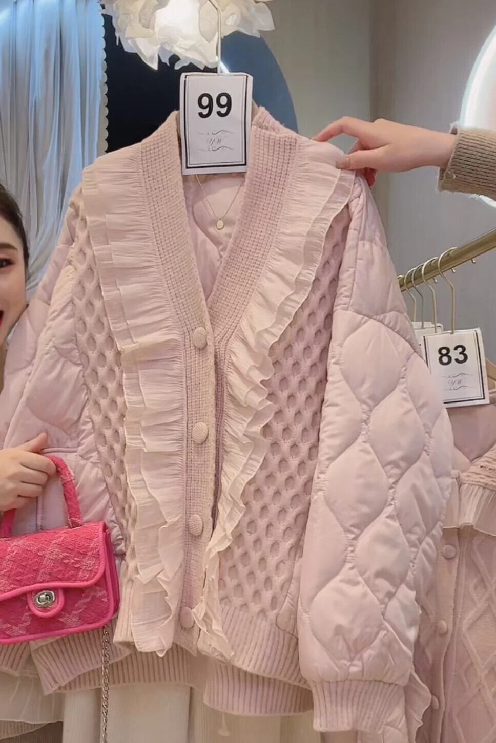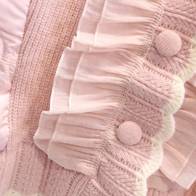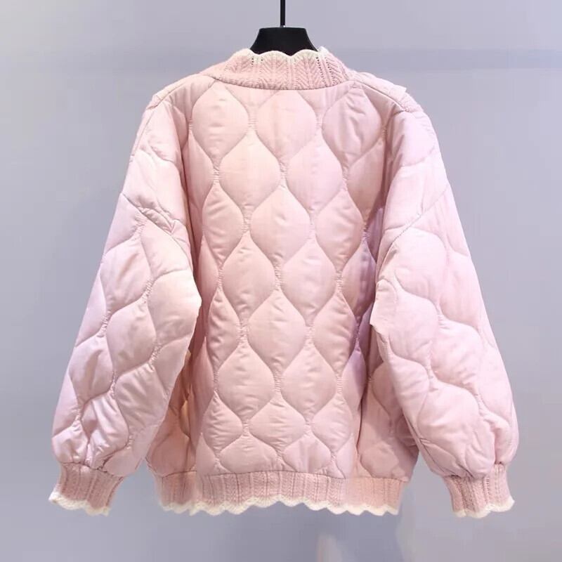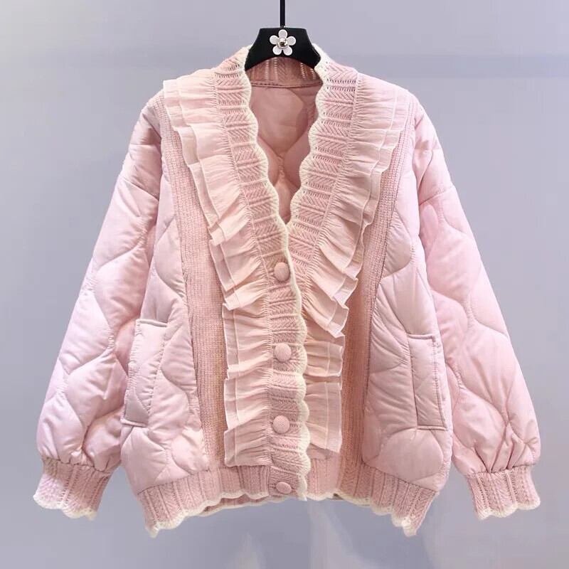 木製キノコエッジニットパッチワークコットンジャケットルース肥厚甘いピンクパーカー 大人ガーリー スウィート キュート カジュアル