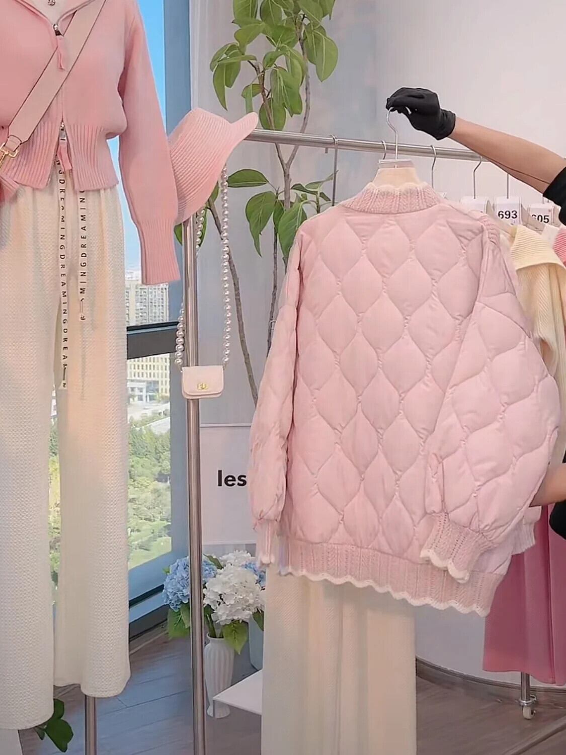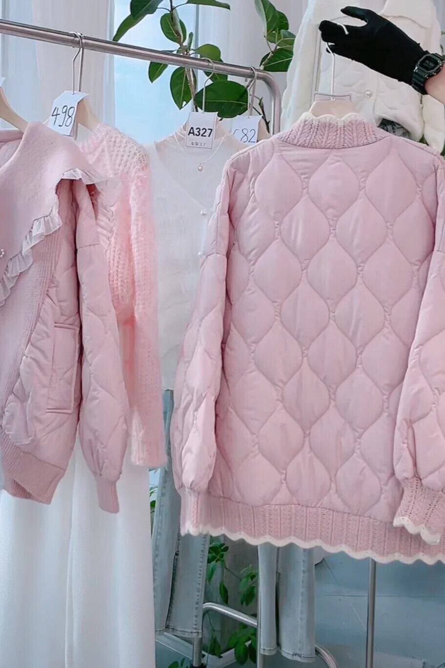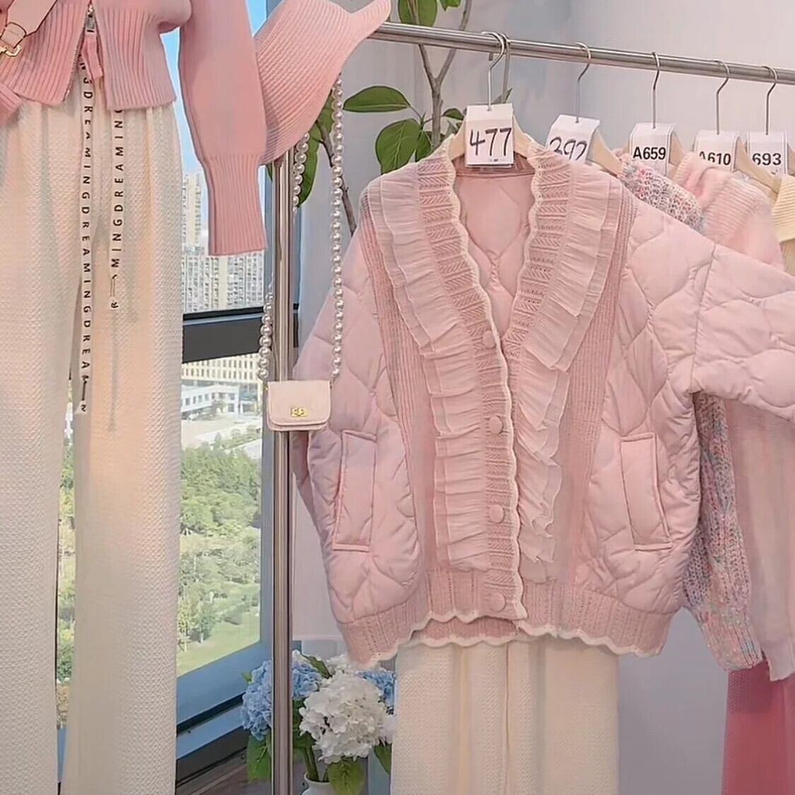 木製キノコエッジニットパッチワークコットンジャケットルース肥厚甘いピンクパーカー 大人ガーリー スウィート キュート カジュアル