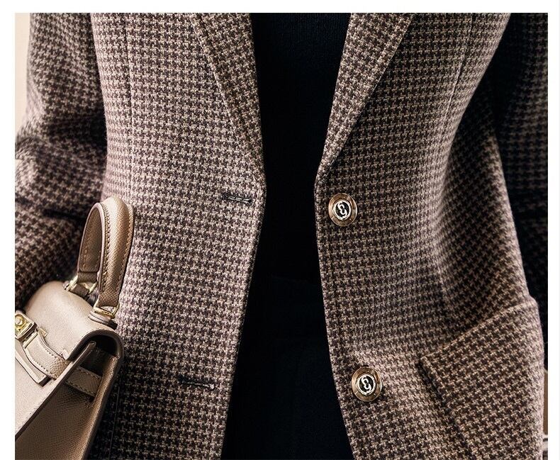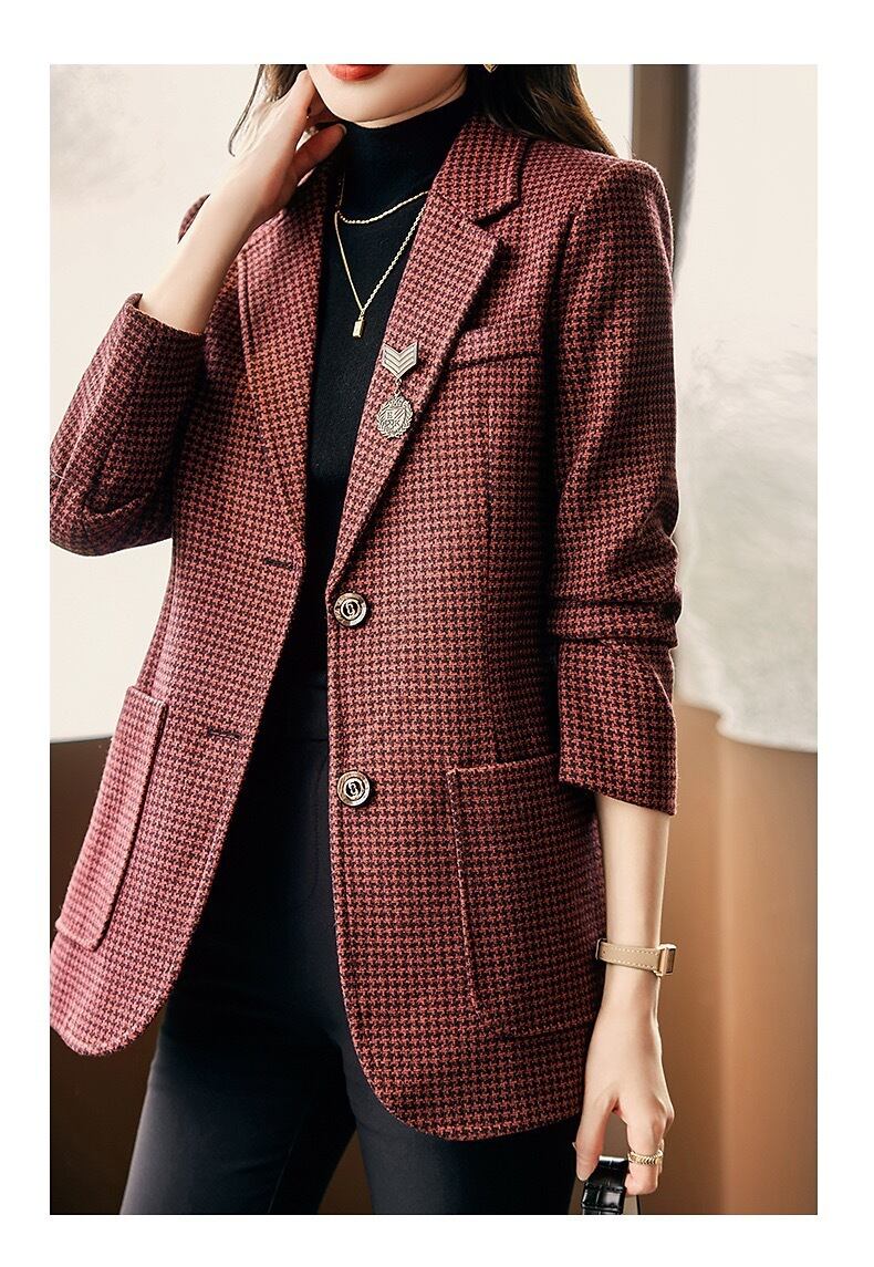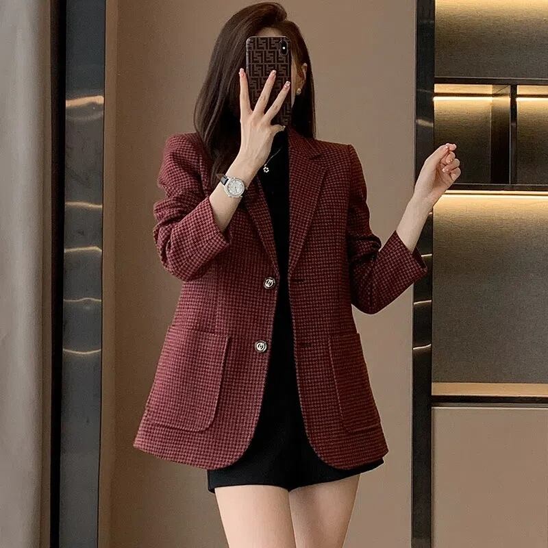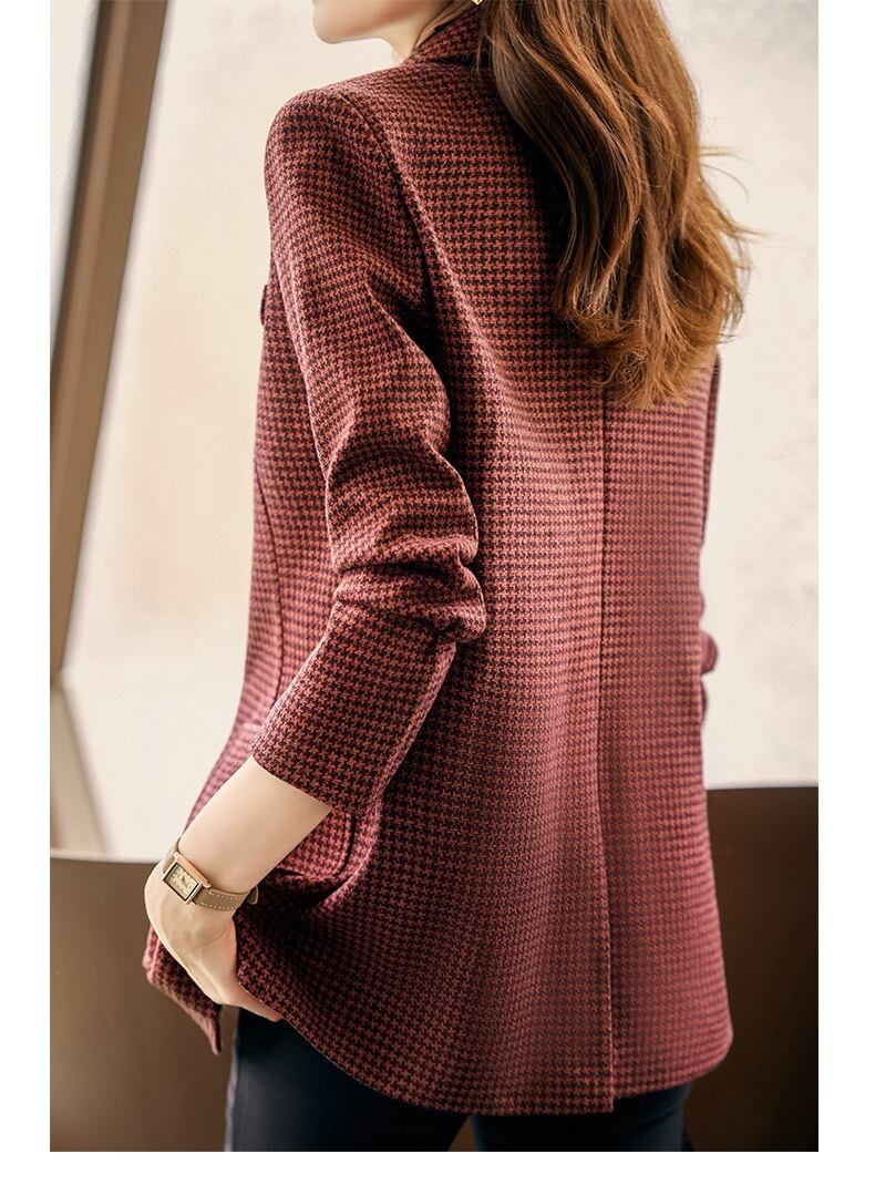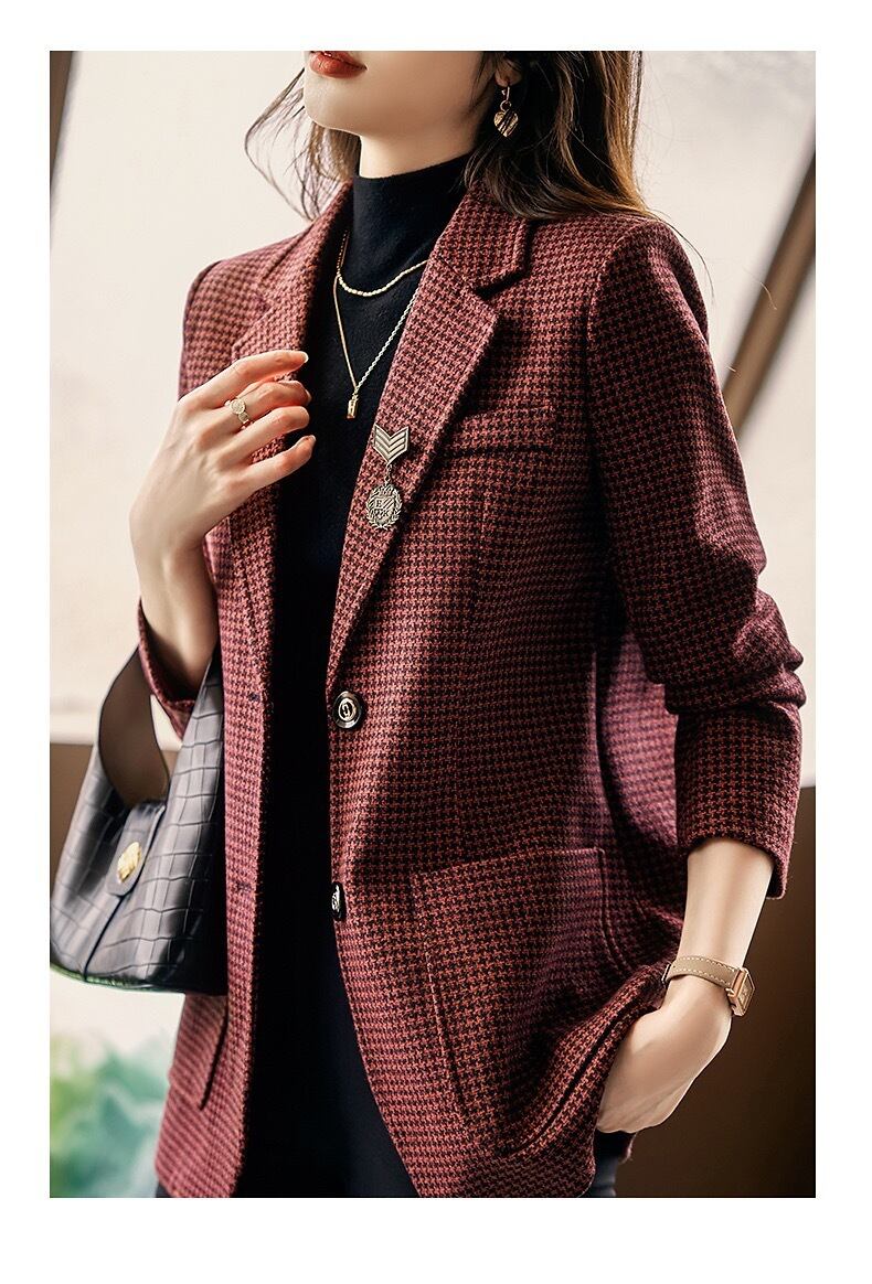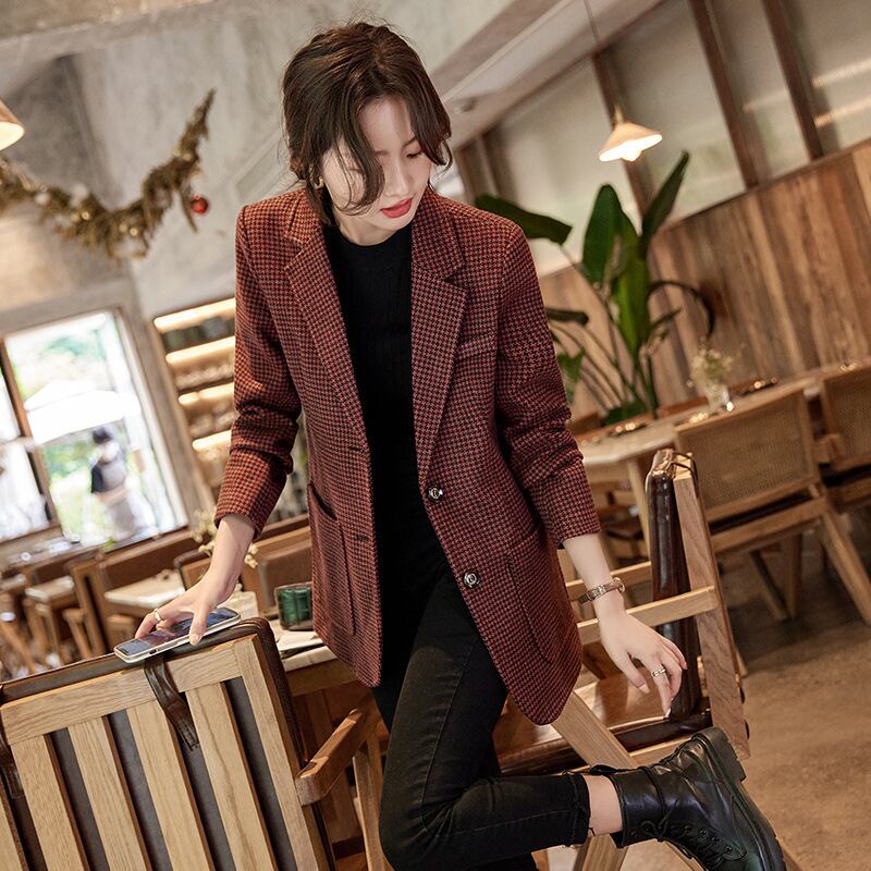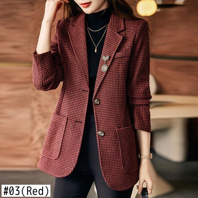 気質千鳥格子スーツジャケット秋レトログリーンレッドゲイリーブレザー オータム 秋物