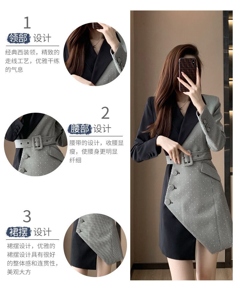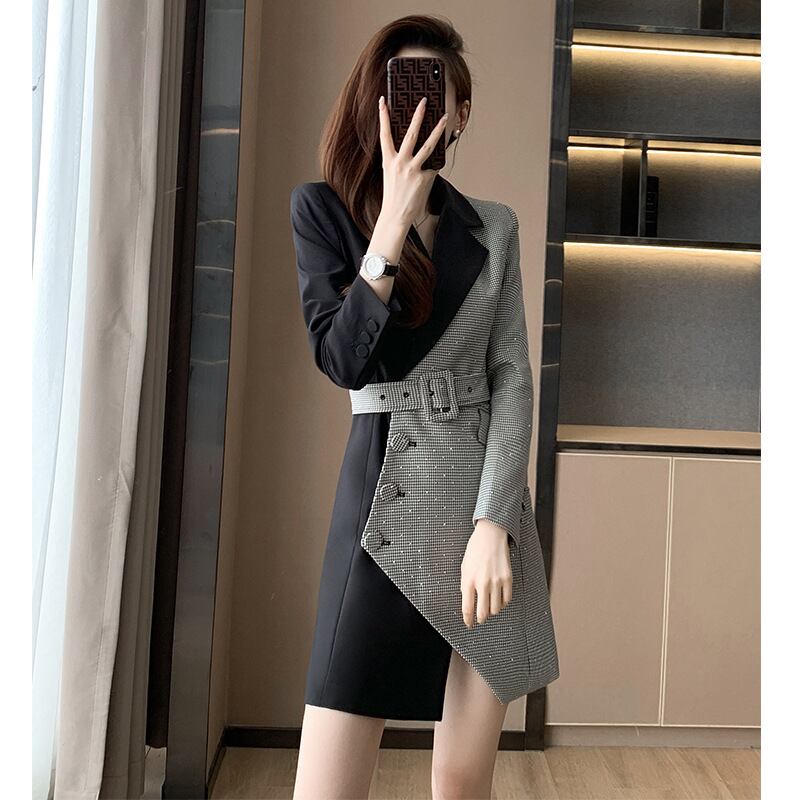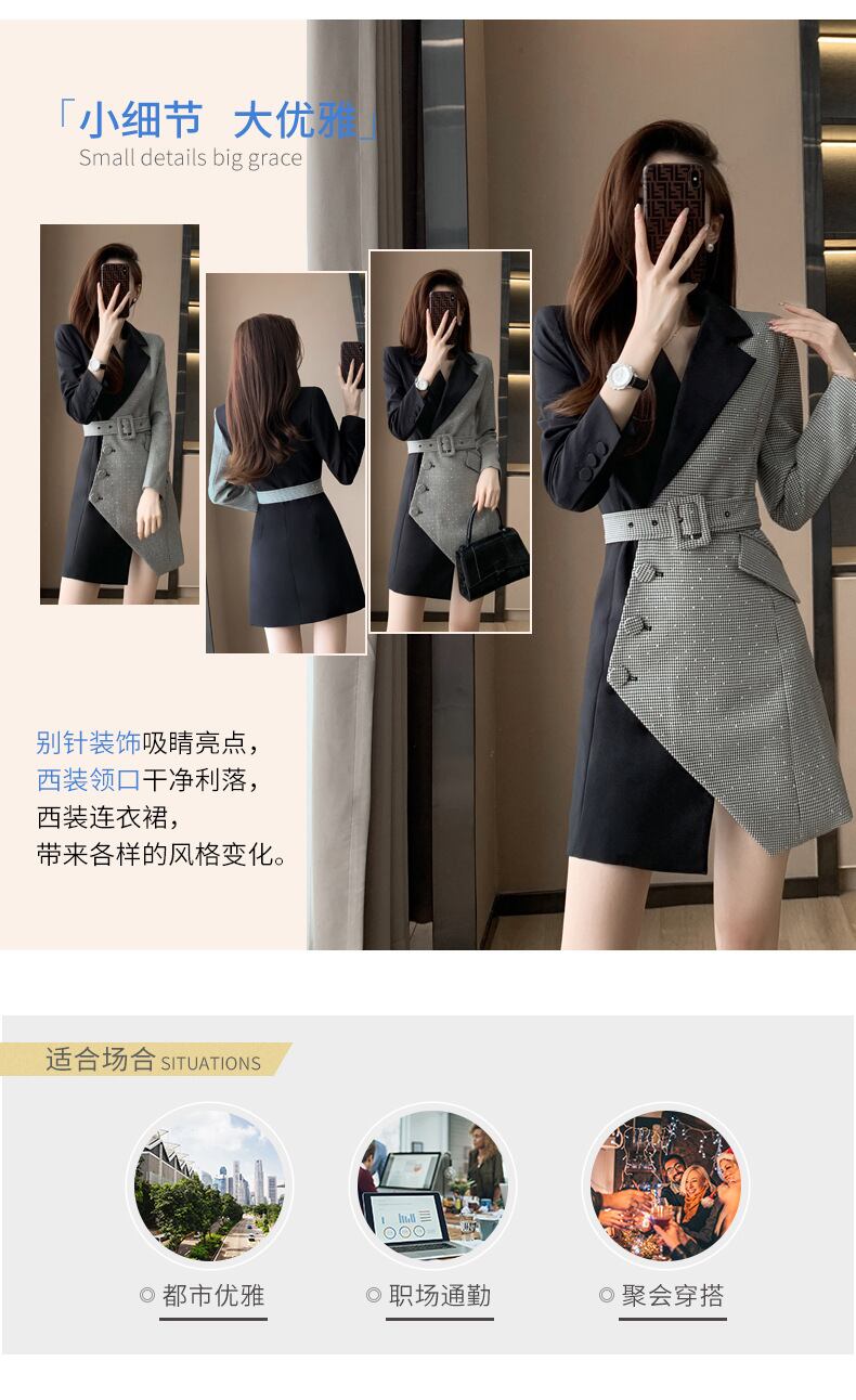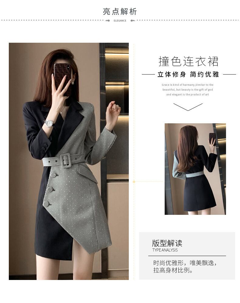 秋長袖OL非対称ウエストスーツカラードレス ロング オータム 秋物