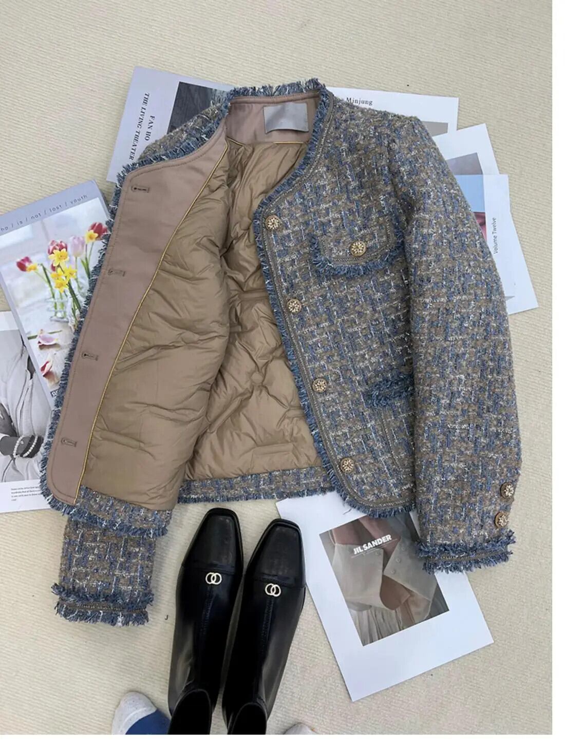 冬肥厚ダウン裏地香り風ウールコートショートホワイトダックダウン気質ジャケット ウィンター 冬物