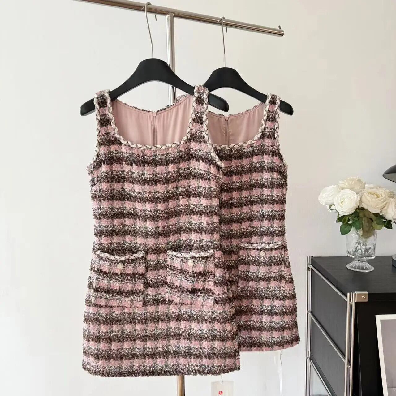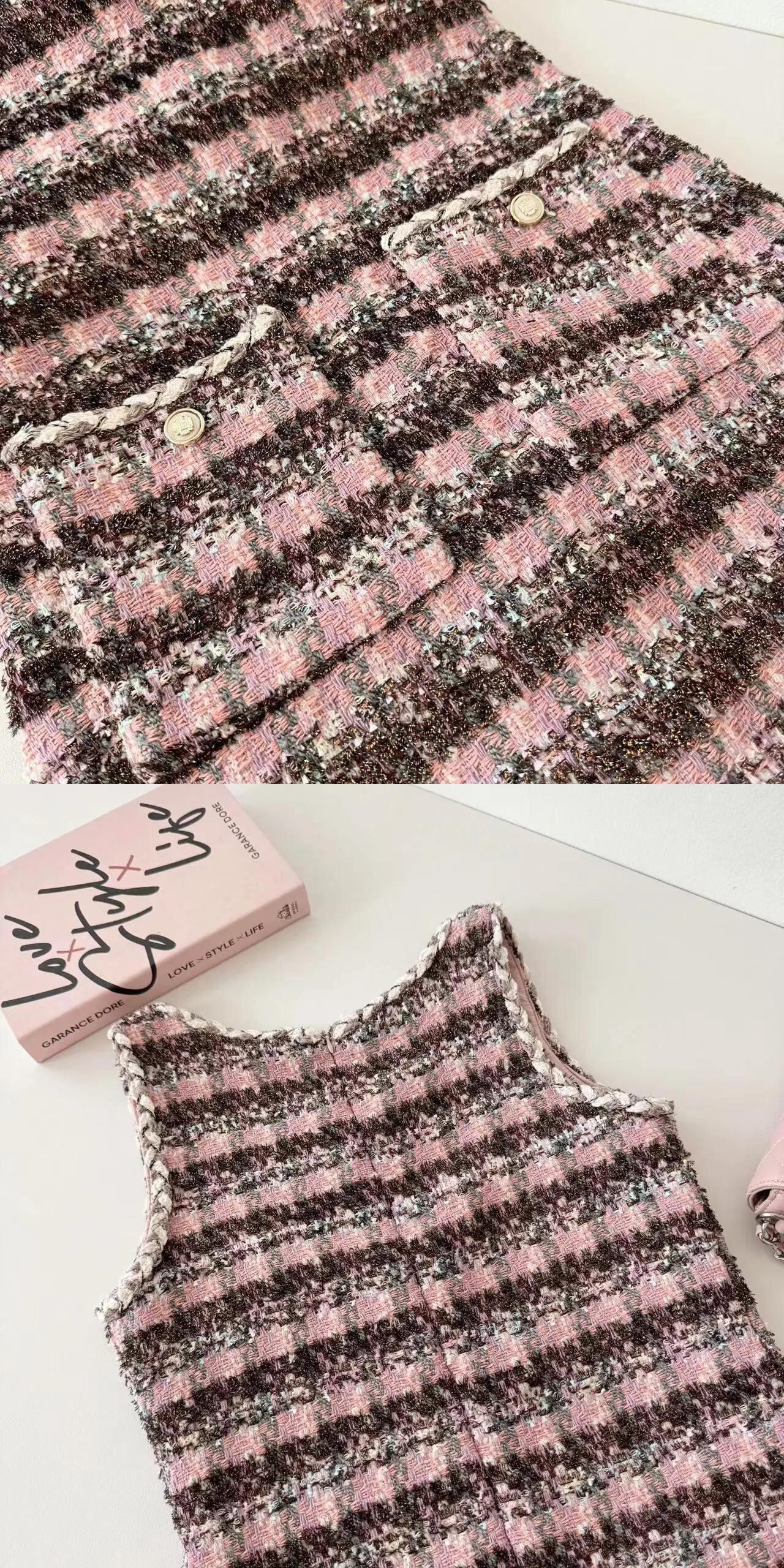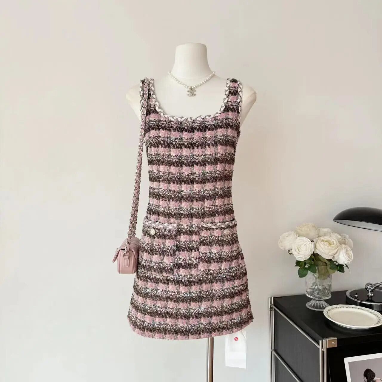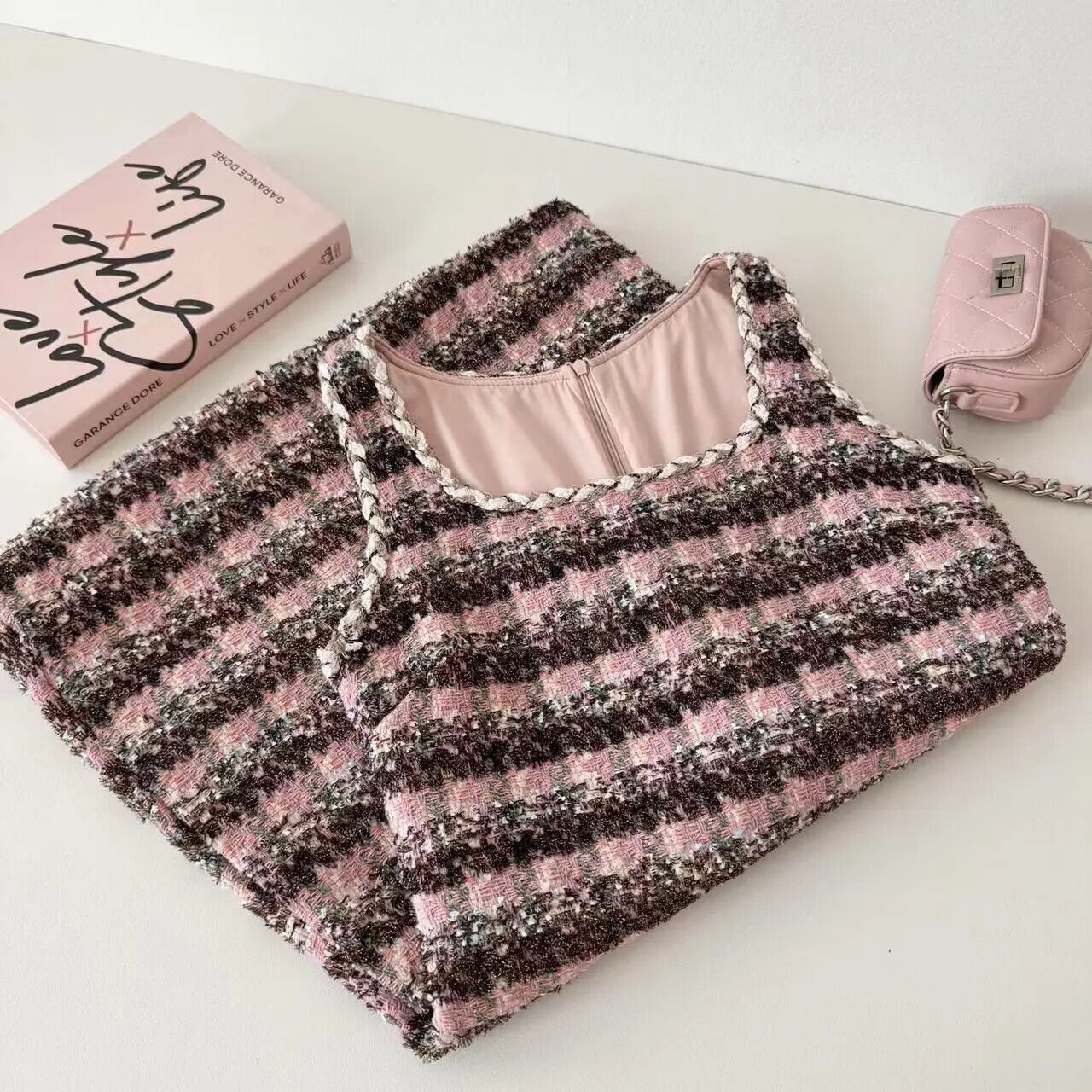 ピンク ツイード タンク トップ ドレス 春夏 レディース スイート 大人ガーリー スウィート キュート カジュアル スプリング 春物 サマー 夏物