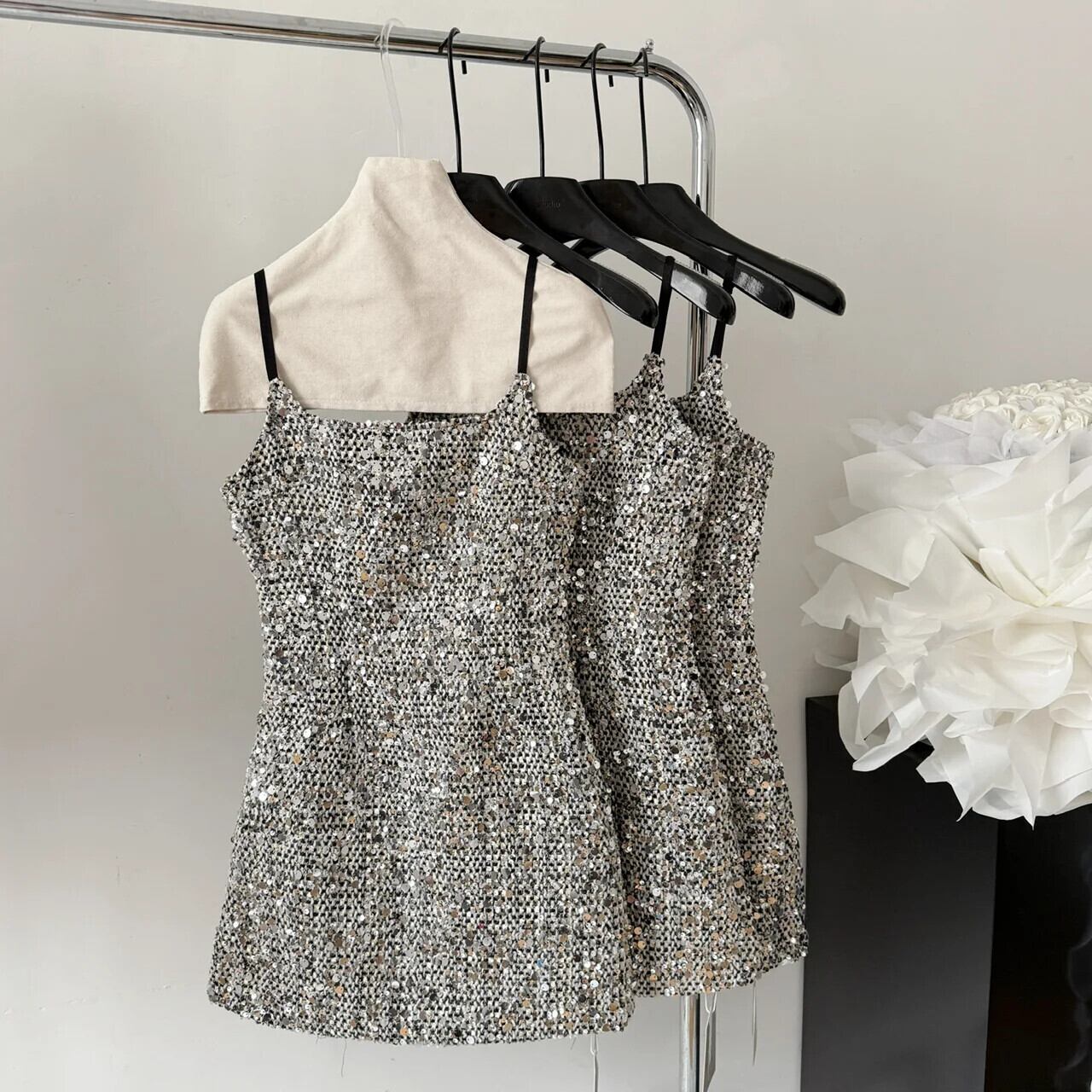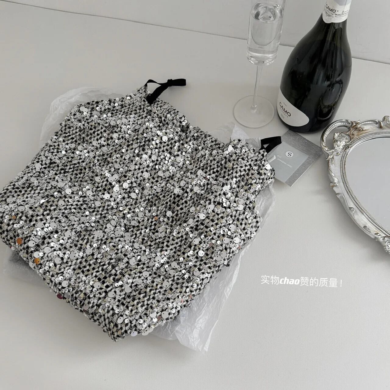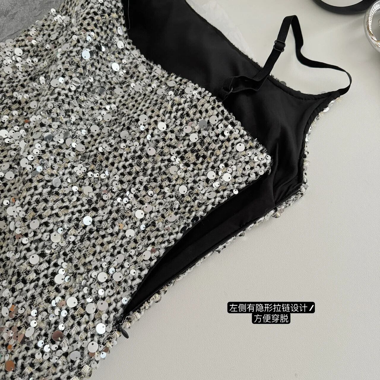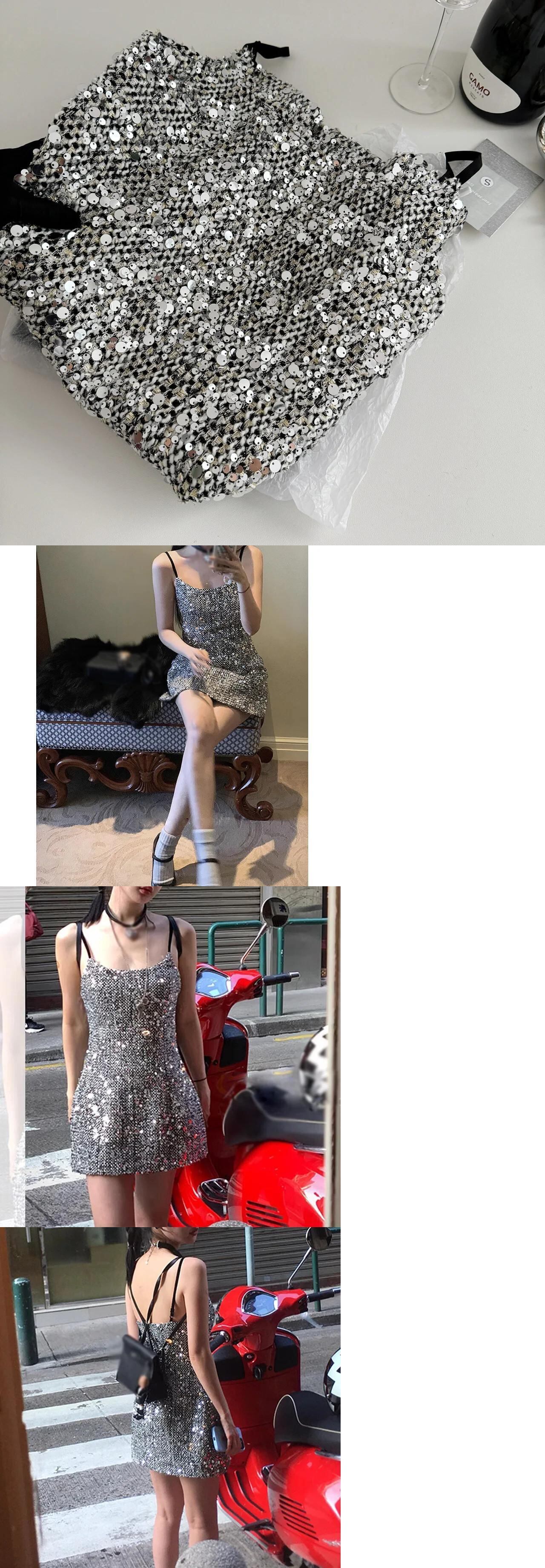 気質スウィートブラックシルバーグリッターサスペンダースパイシーガールセクシーAラインドレス 大人ガーリー キュート カジュアル 銀