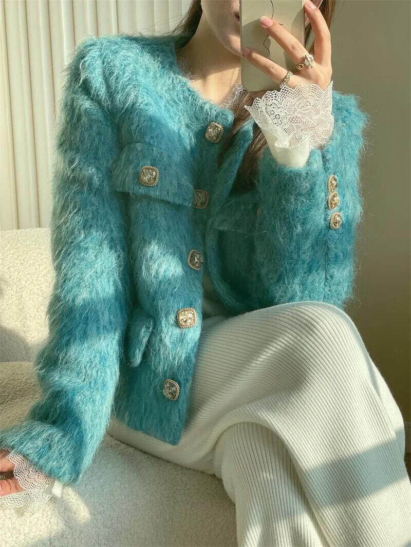 春秋洗練された気質ラウンドネックウールファーショートコートブルージャケット スプリング 春物 オータム 秋物