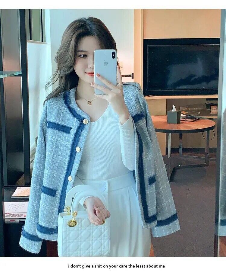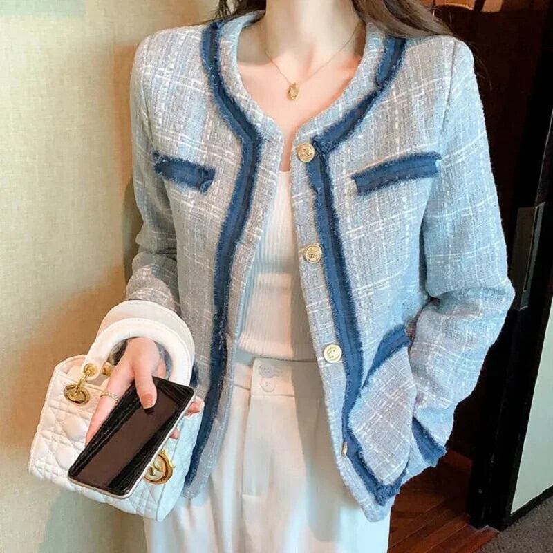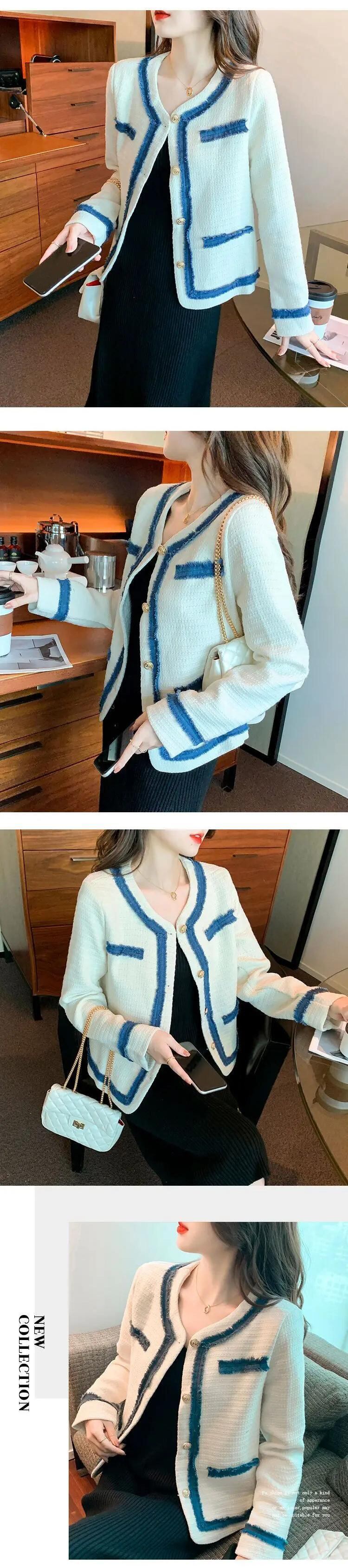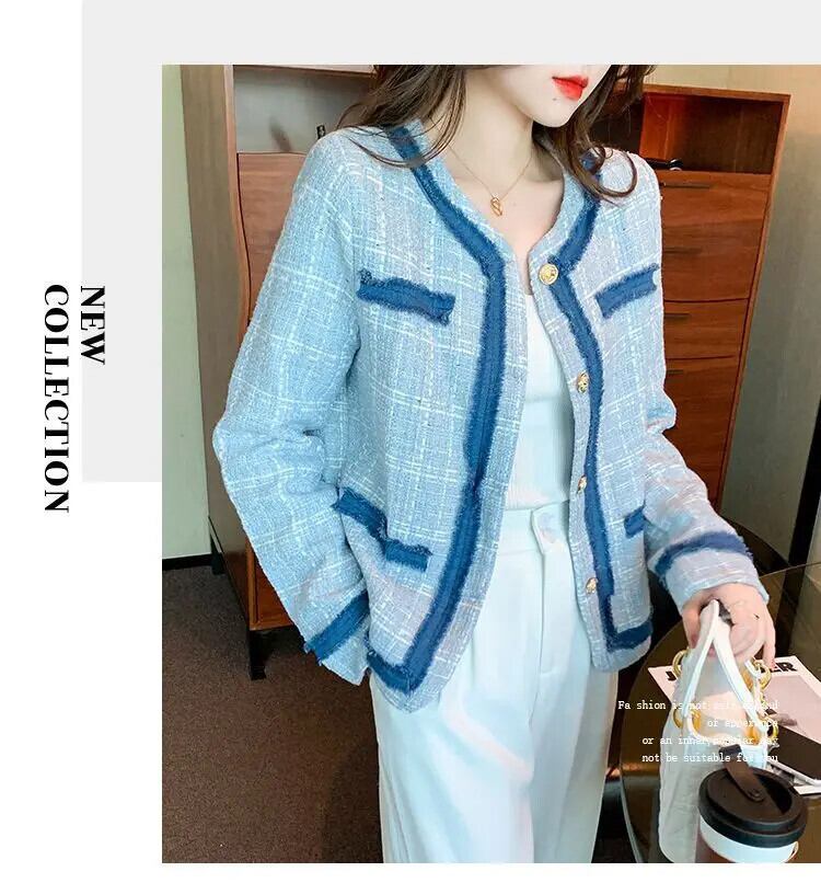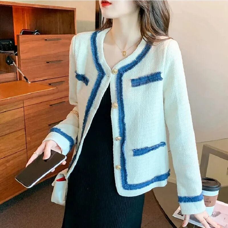 セレブ長袖ショートレディース春ブレザーオールマッチツイードインスーツジャケット ロング スプリング 春物