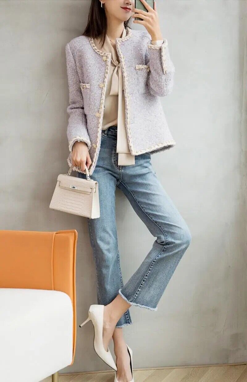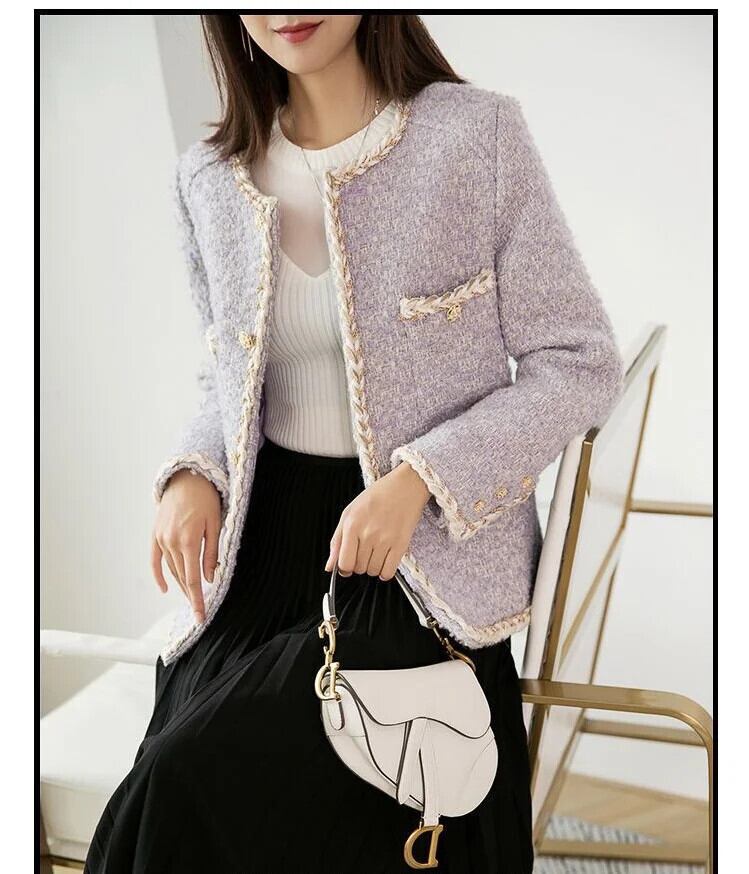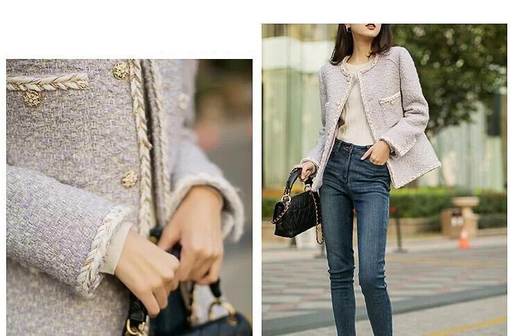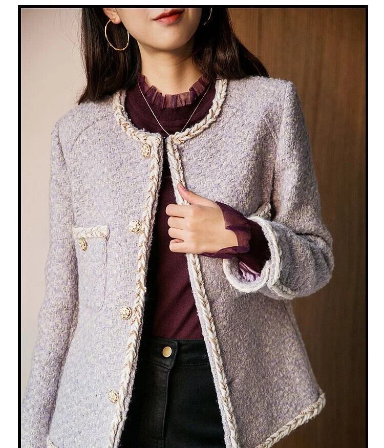 滑走路春秋シングルブレストツイードウールコート O ネック高級テルジャケット生き抜く スプリング 春物 オータム 秋物 Oネック