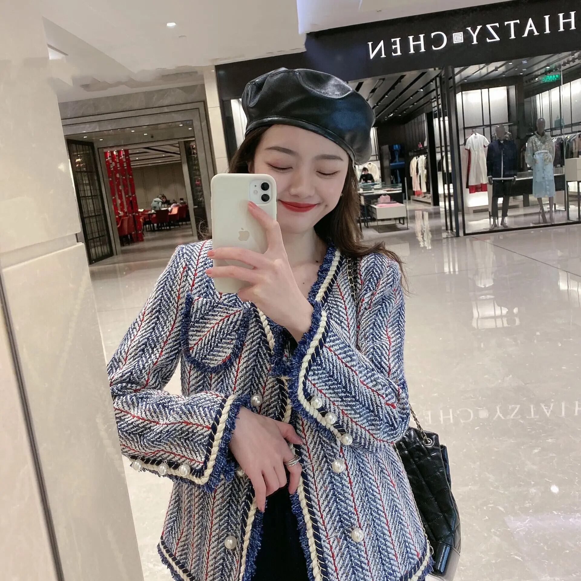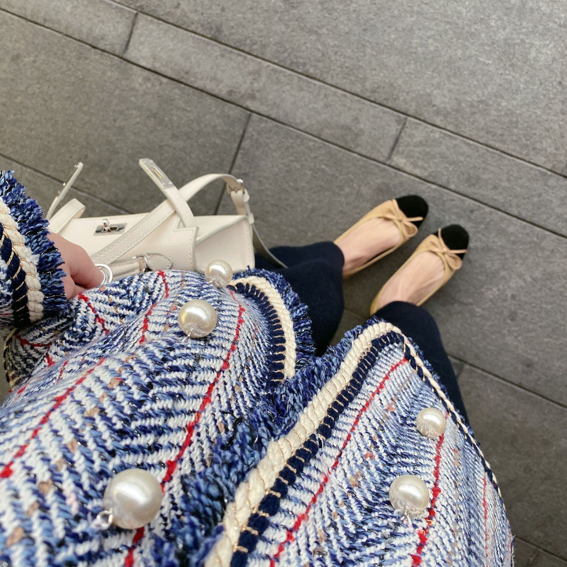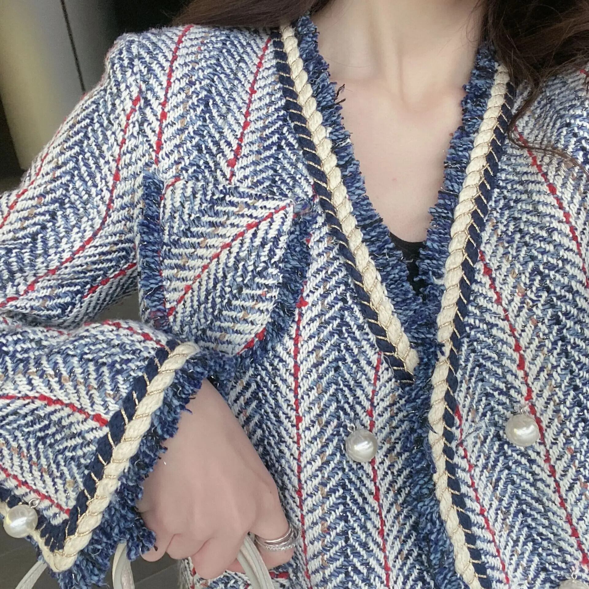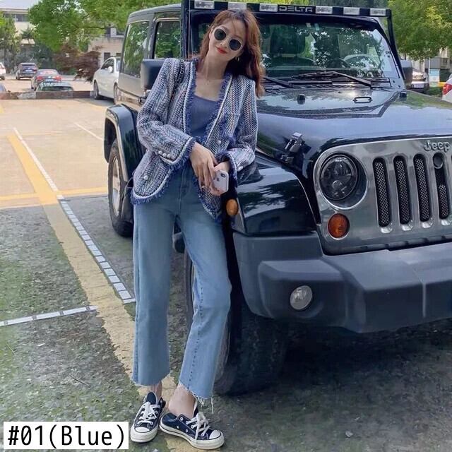 ツイードスーツジャケット秋ポケットボタンストリート作物オフィスビジネスコート冬シック オータム 秋物 ウィンター 冬物 会社 学校 通勤や通学にも