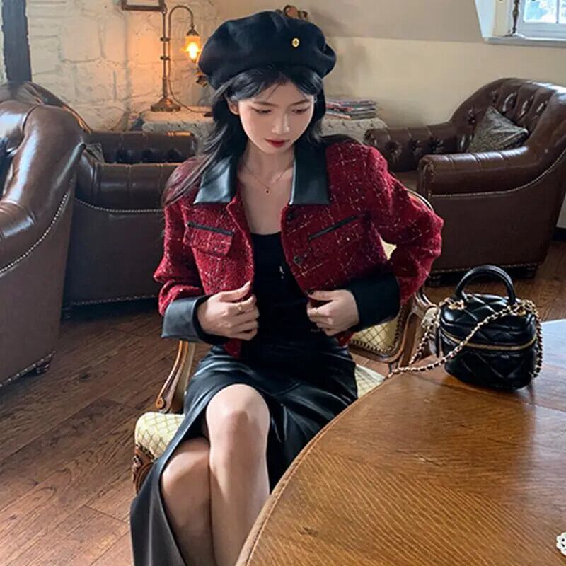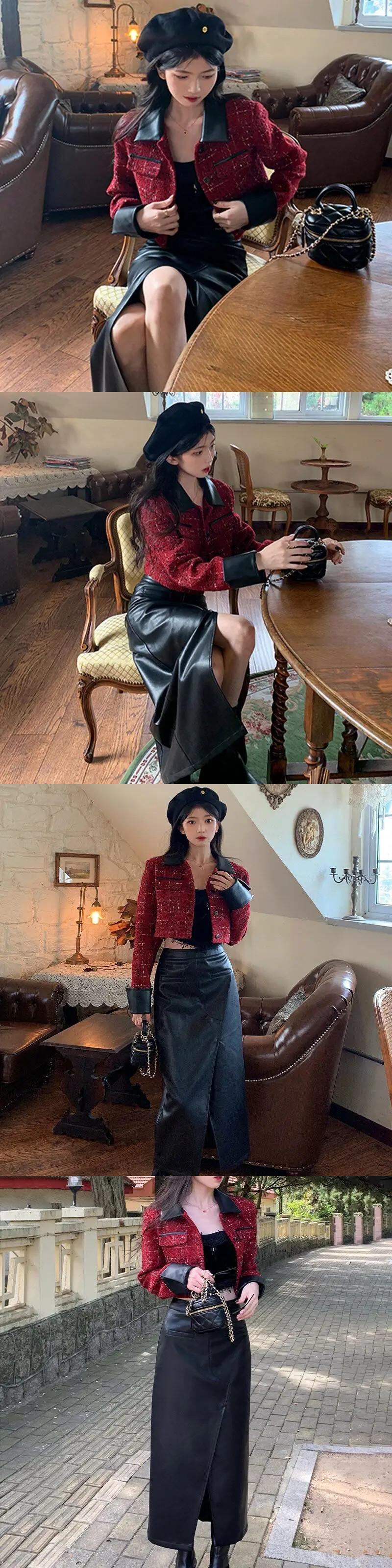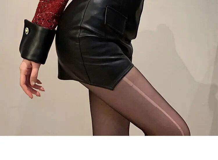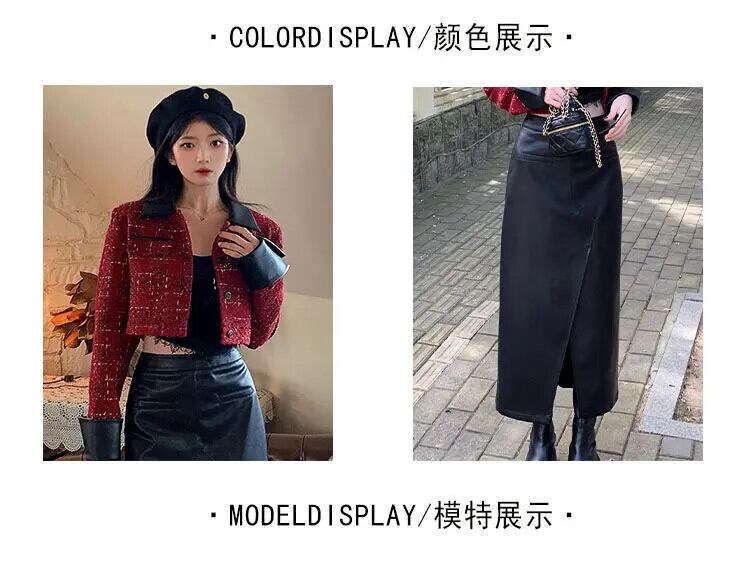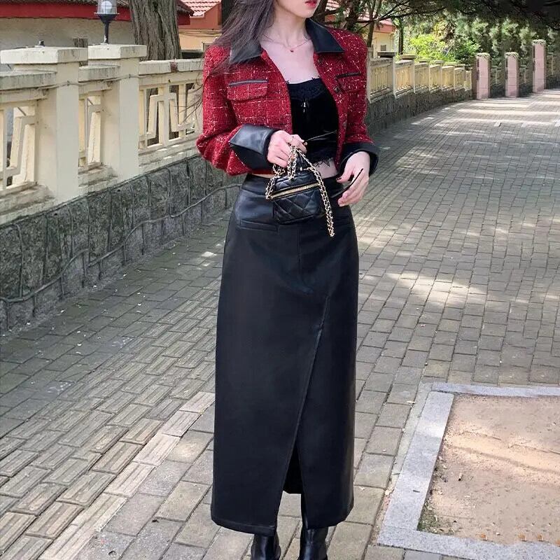 セクシーロング/ショート スプリット ブラック PU ハーフスカート パーティー スリム フィット レザー スカート
