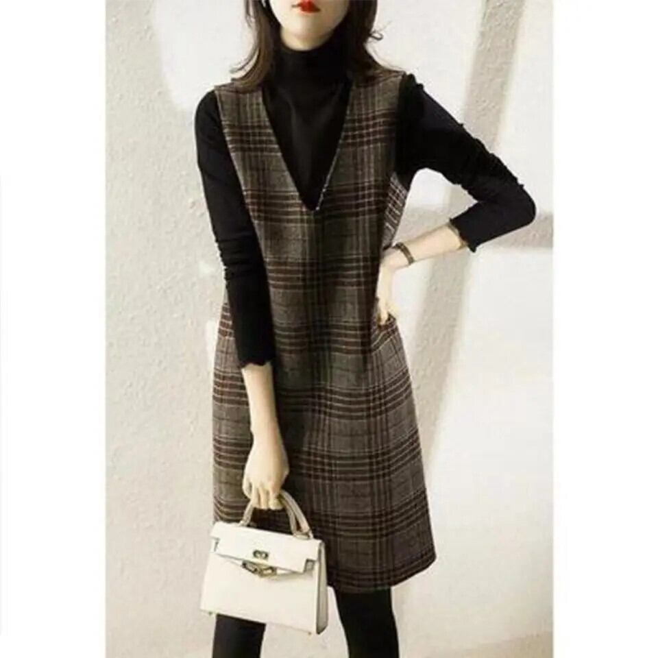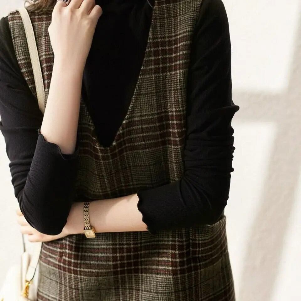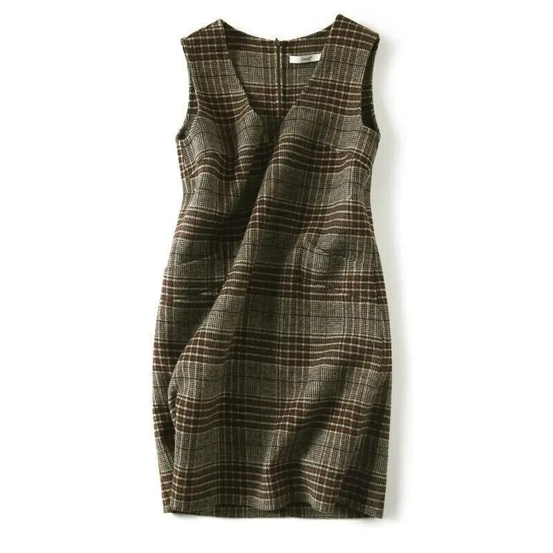 春と秋ミッドレングススリムAラインツイードウールベストドレス スプリング 春物 オータム 秋物
