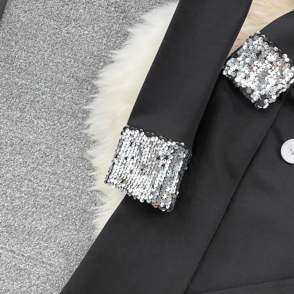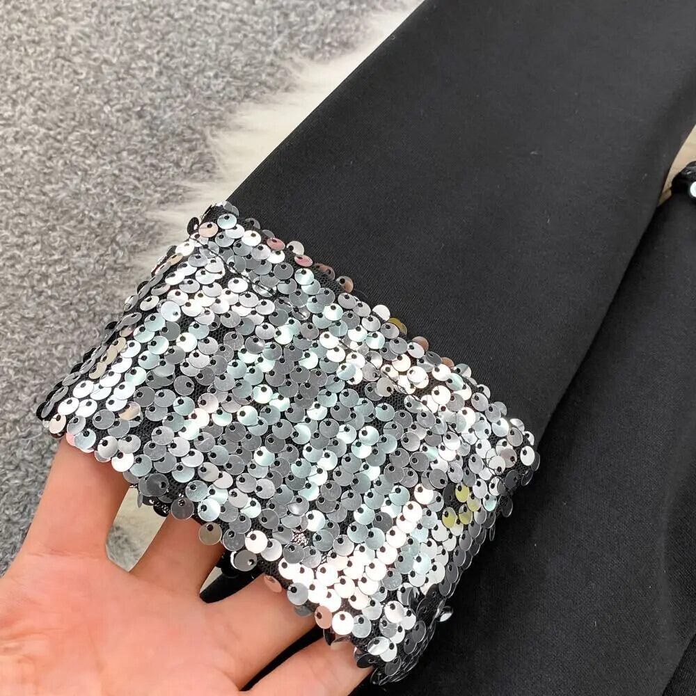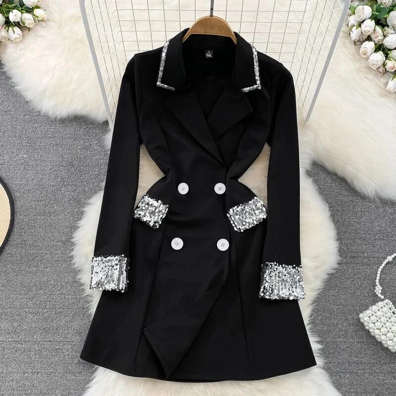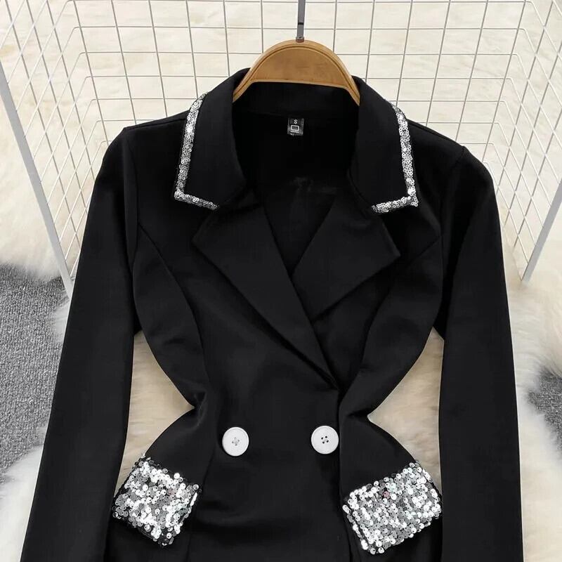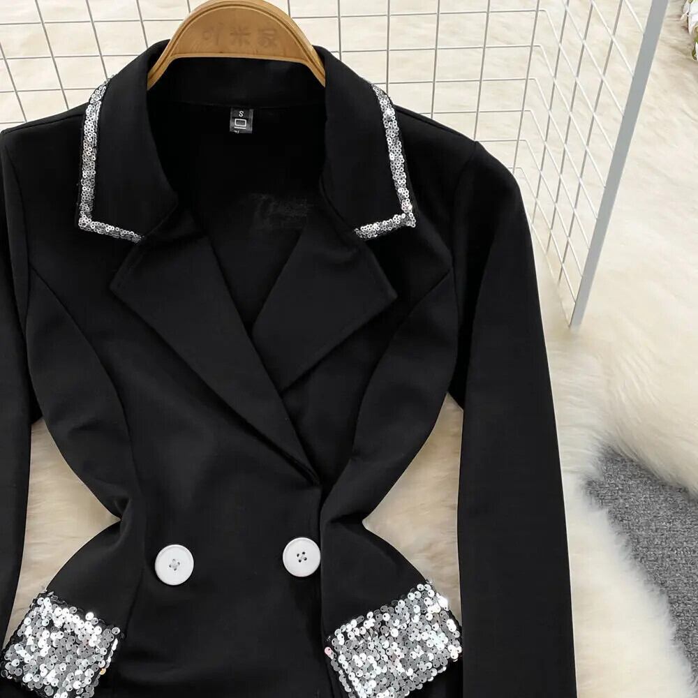 春秋気質スパンコールダブルブレストスーツドレスブラックレディース スプリング 春物 オータム 秋物