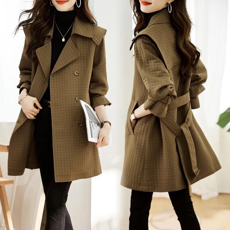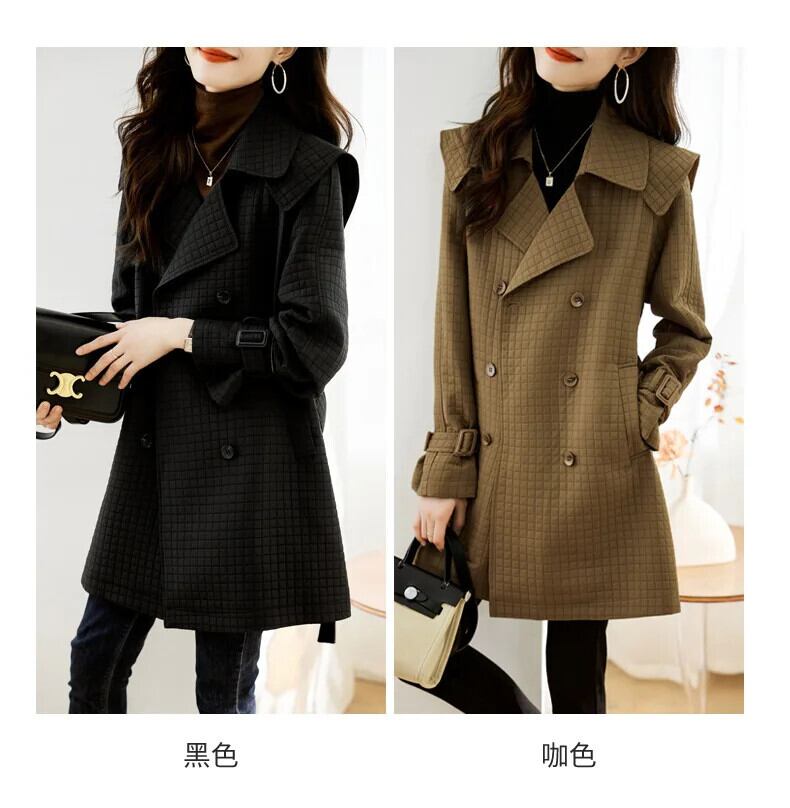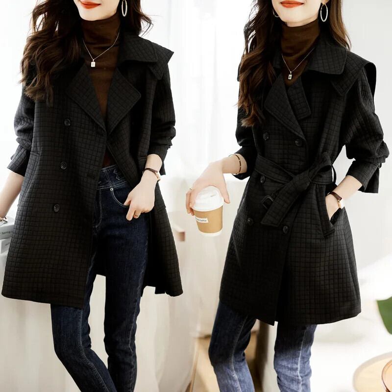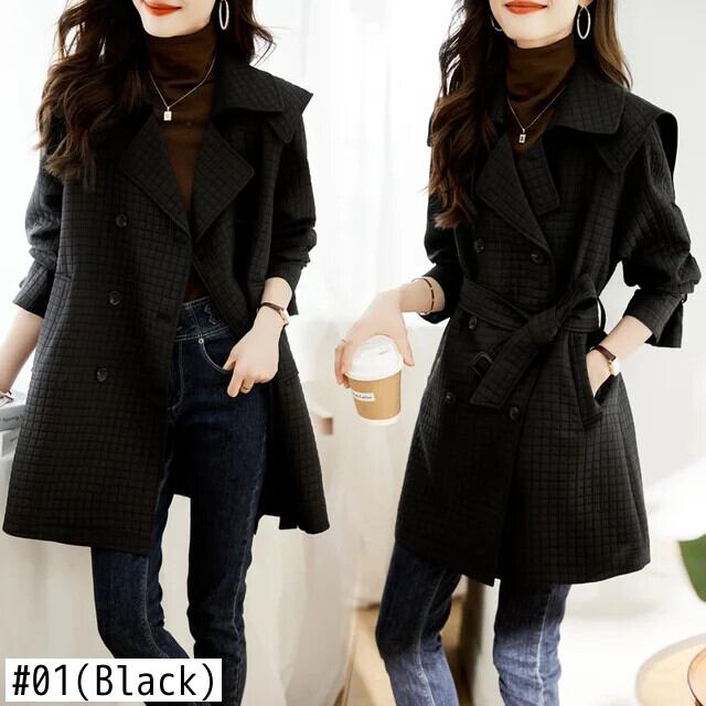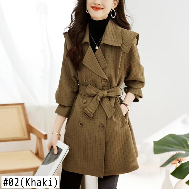 トレンチコート レディース 春秋 カーキ ブラック ダブルブレスト タイアップ ルーズ ウインドブレーカー スプリング 春物 オータム 秋物