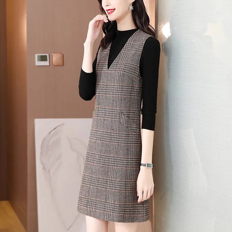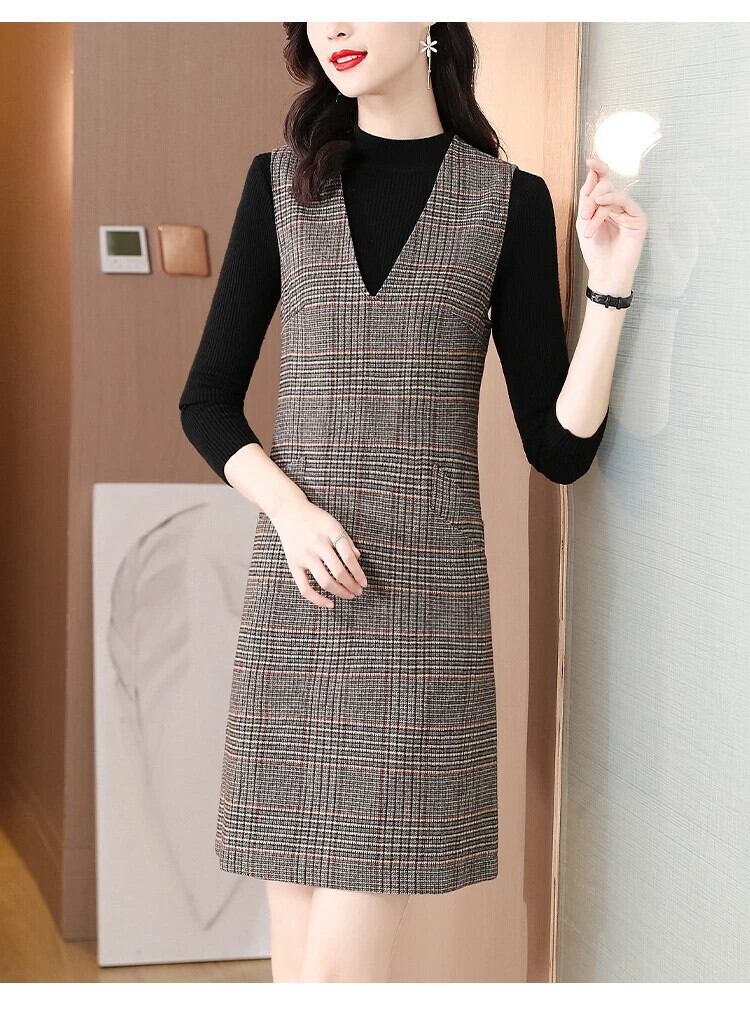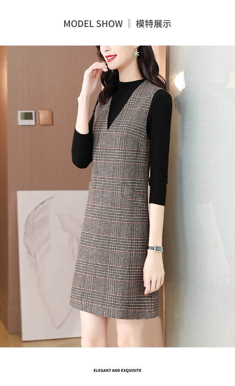 ルーズロングスタイルノースリーブチェック柄タンクトップ秋/冬ウールベストドレス オータム 秋物 ウィンター 冬物