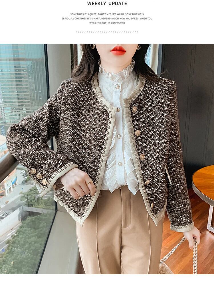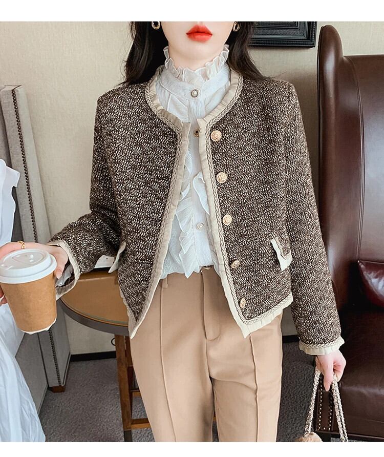 秋冬ウールフリース気質厚いツイード香りコートジャケット オータム 秋物 ウィンター 冬物