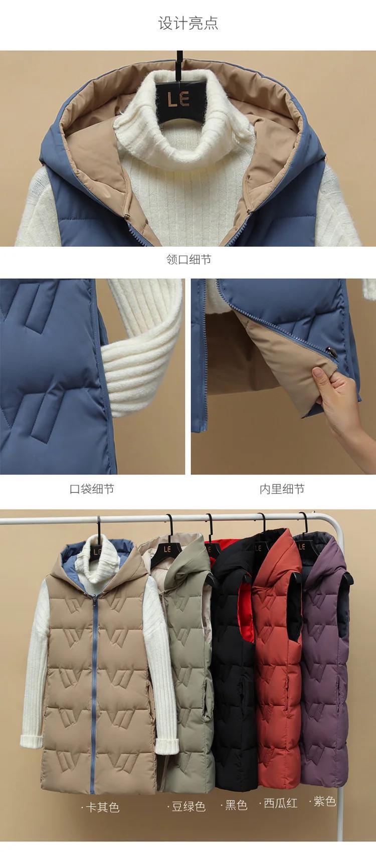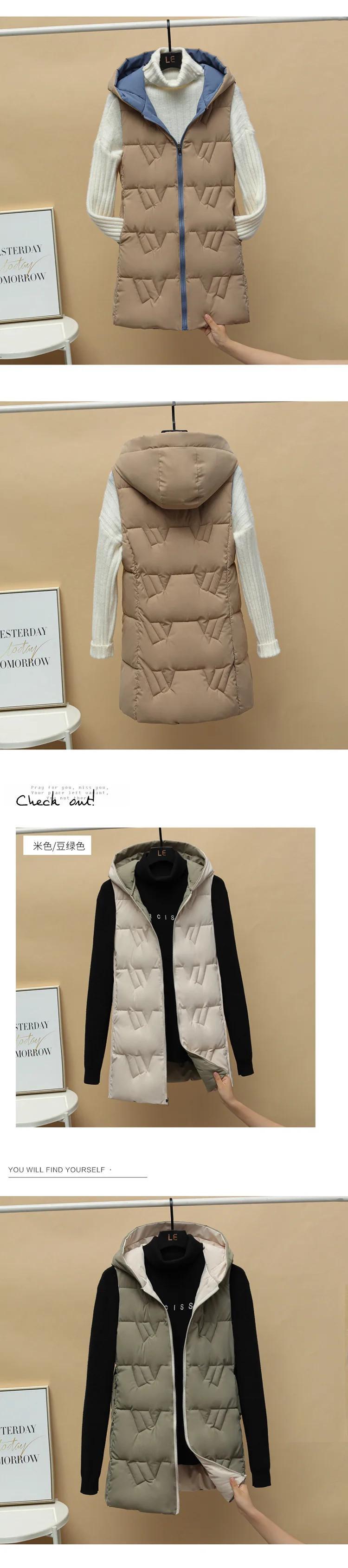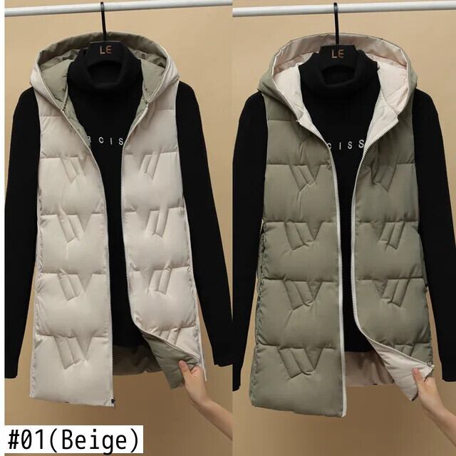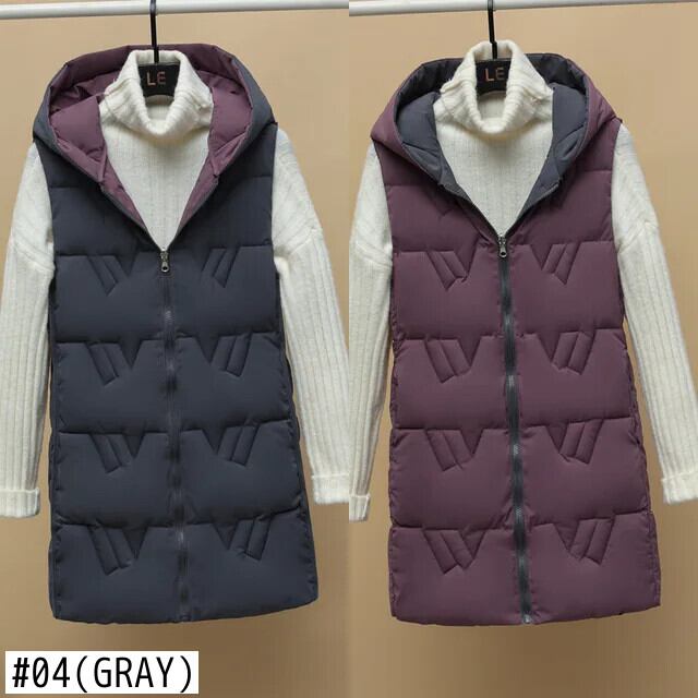 ダウンコットンベスト秋冬ノースリーブジャケットフード付き両面ラブルチョッキ オータム 秋物 ウィンター 冬物