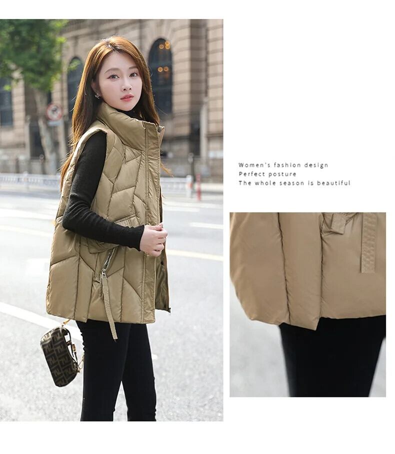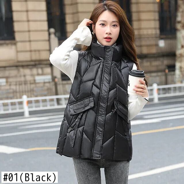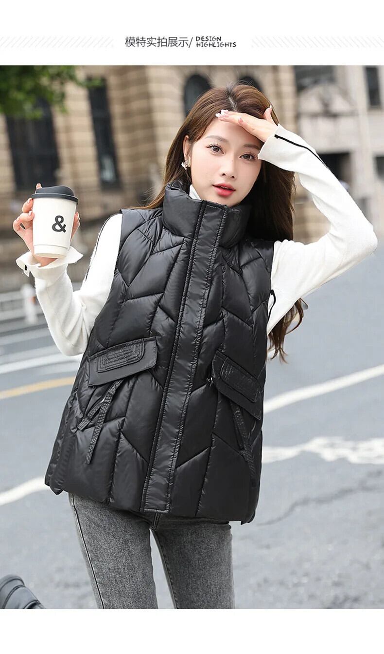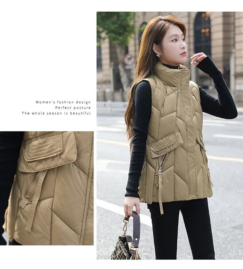 秋/冬ルーズ万能INSスタンドネックコットンノースリーブタンクトップショートベストレディースコート オータム 秋物 ウィンター 冬物