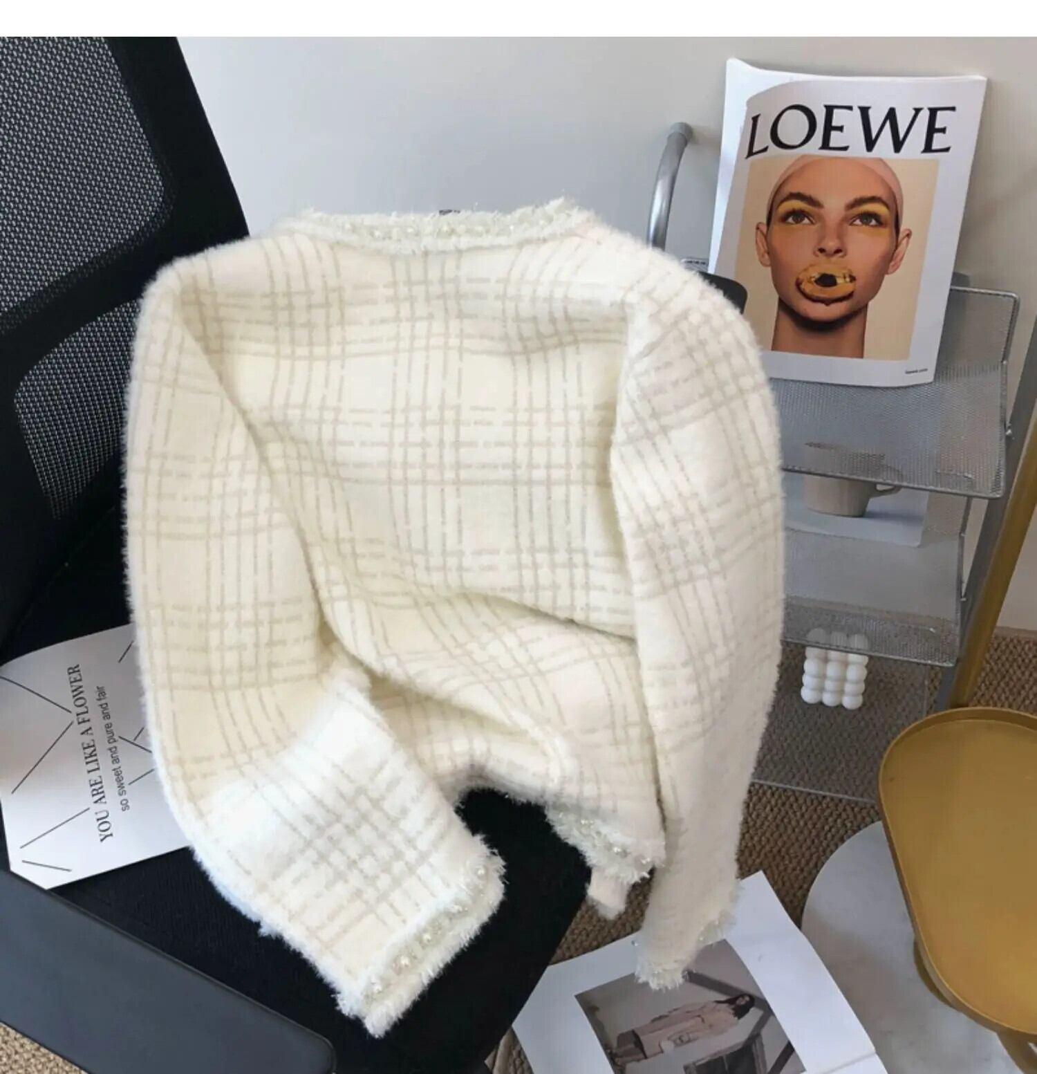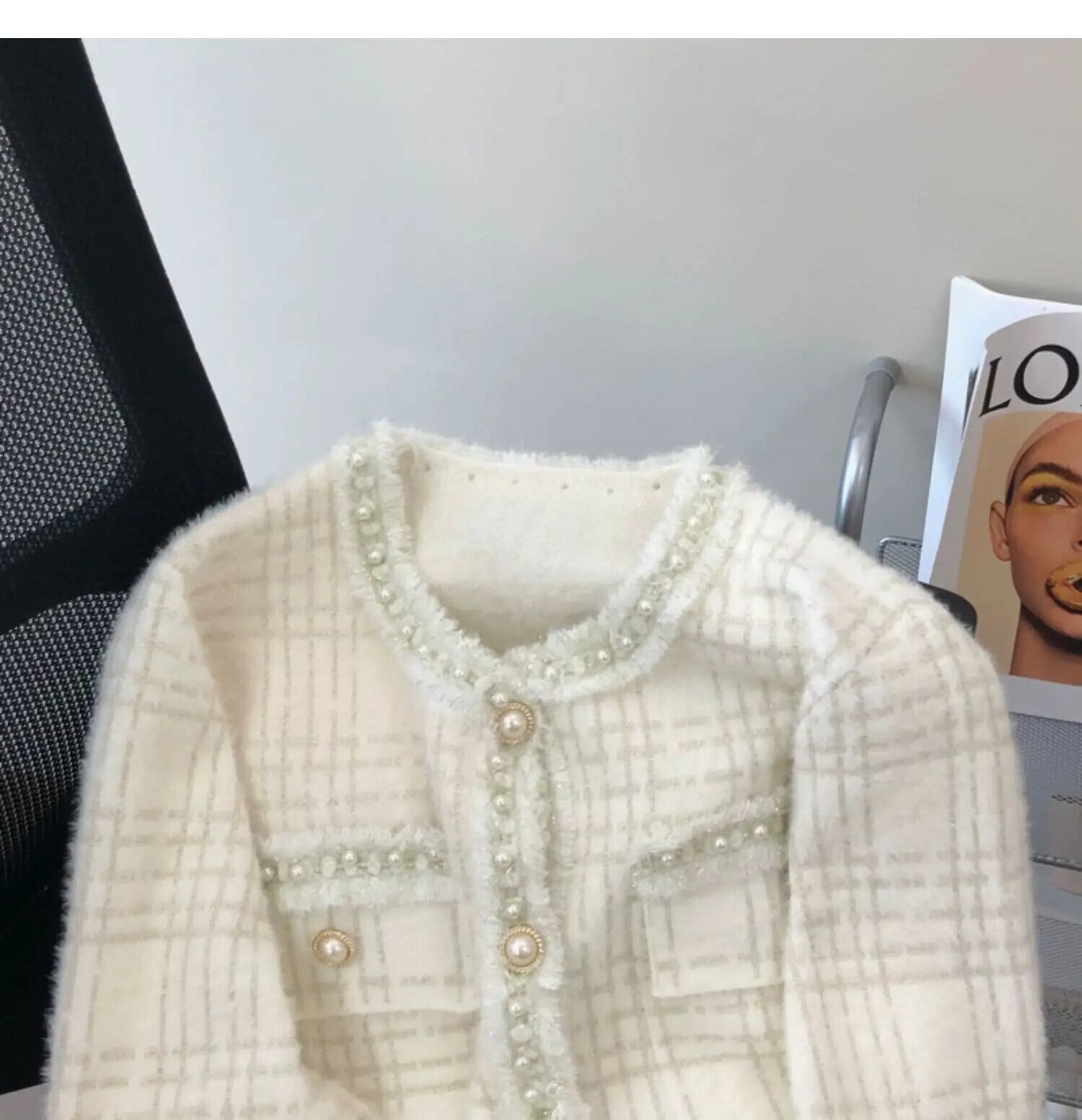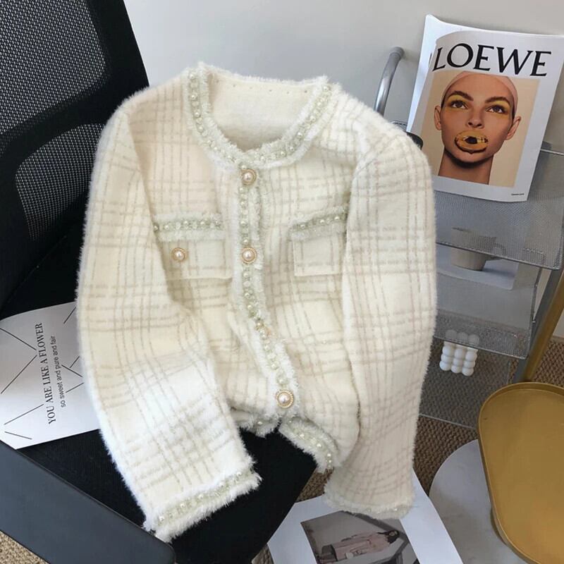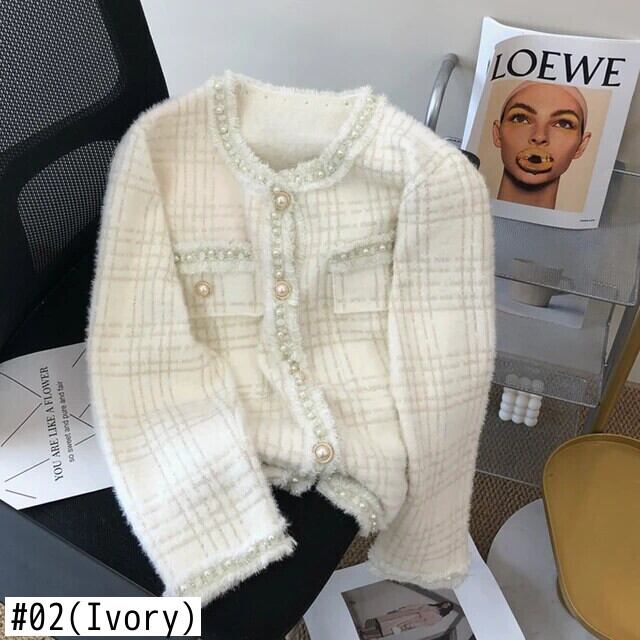 フレグランスホワイトショートレディース冬秋テルニットカーディガンセーターコート オータム 秋物 ウィンター 冬物