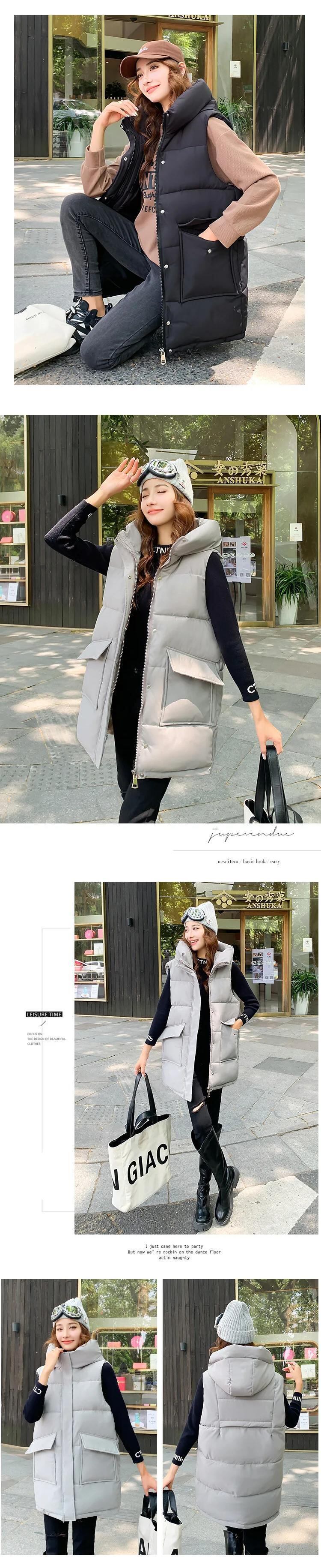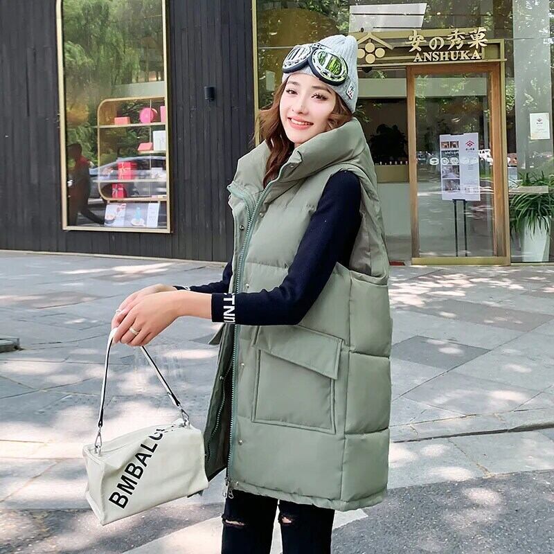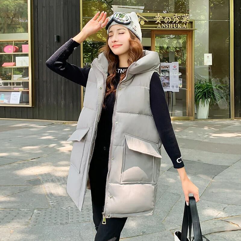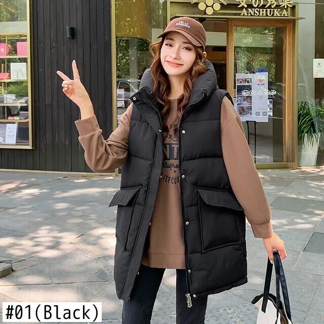 秋冬ロングダウンコットンベスト学生緩い軽量立ち襟タンクトップチョッキ オータム 秋物 ウィンター 冬物