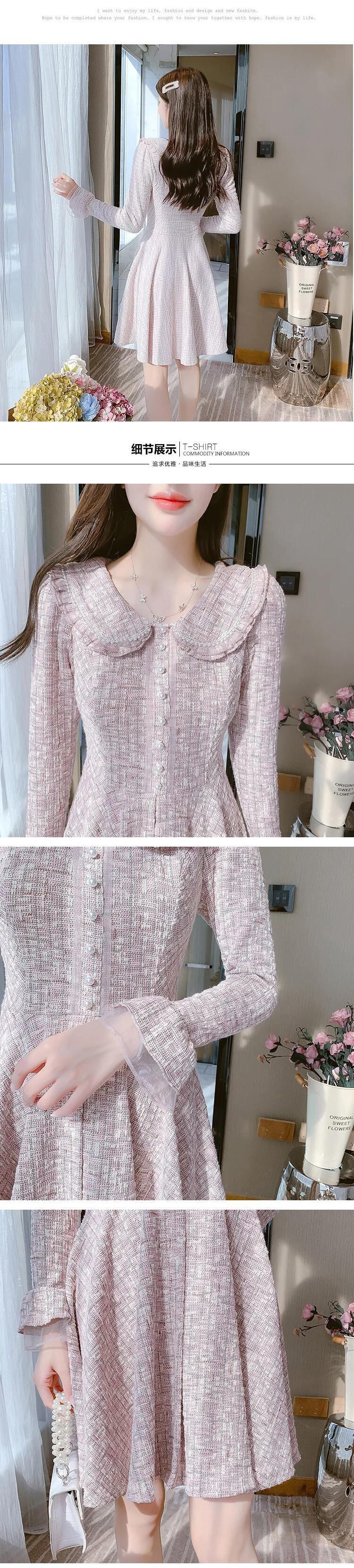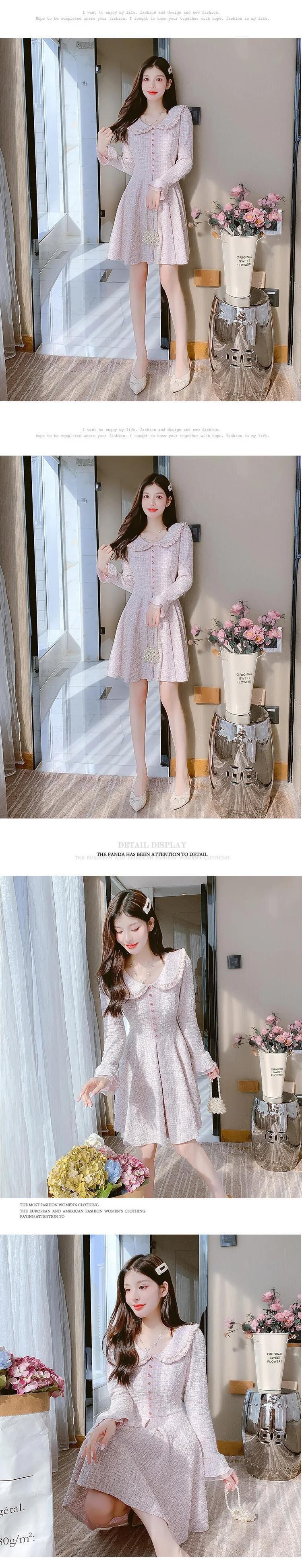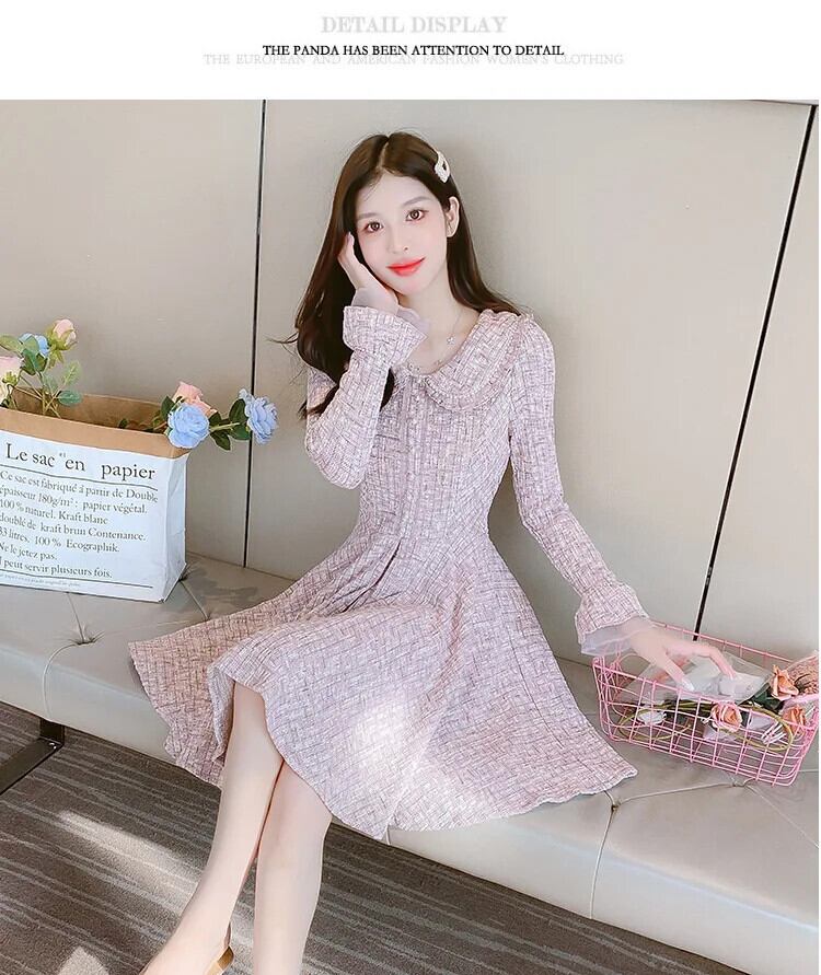 秋レディースフラワーウールイヤーエッジフレアスリーブAラインドレス オータム 秋物 フラワーデザイン