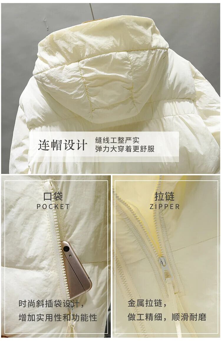 冬ジッパーパーカーシンプルフード付きスリムフィット暖かいパンダウンコットンコート学生 ウィンター 冬物