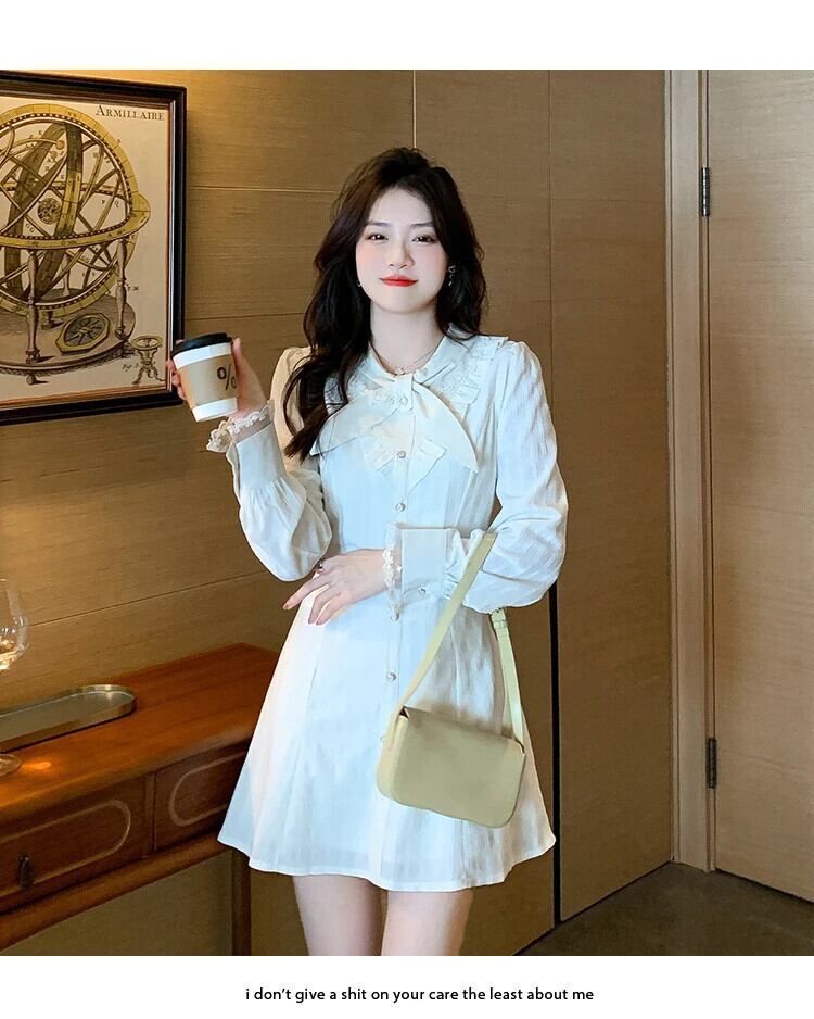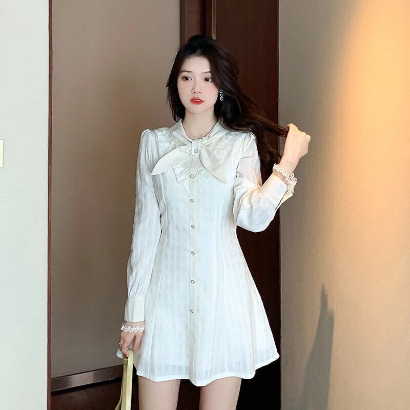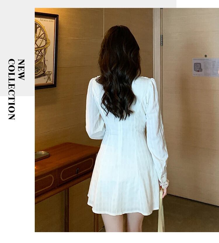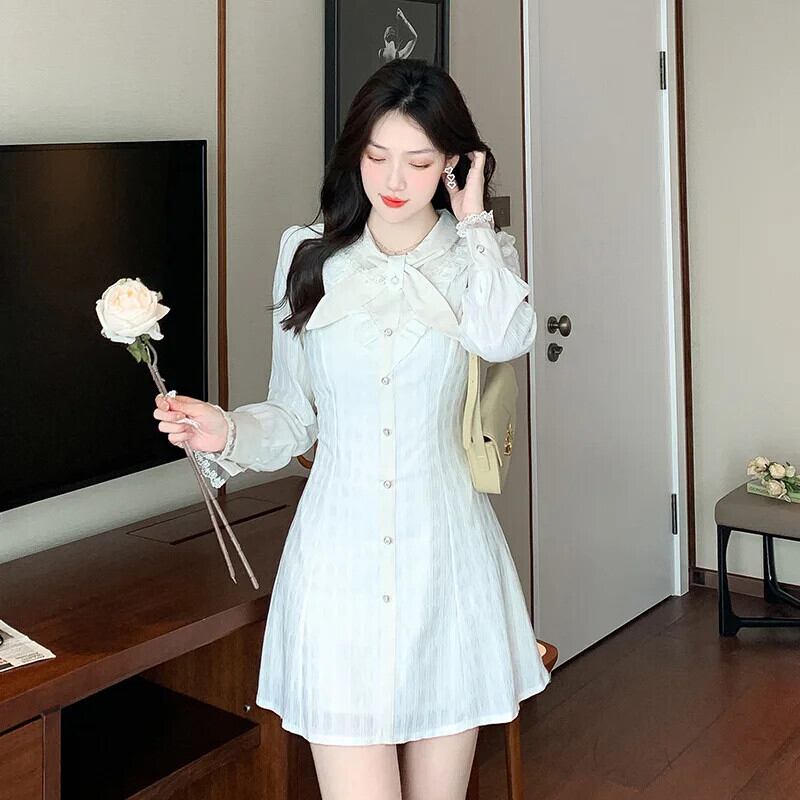 春秋スタイル香り風レース白いドレス ホワイト スプリング 春物 オータム 秋物