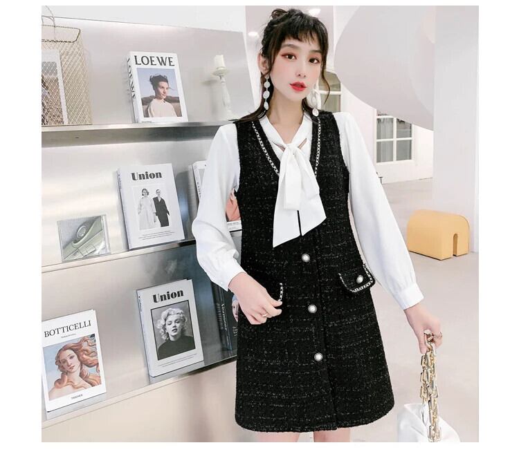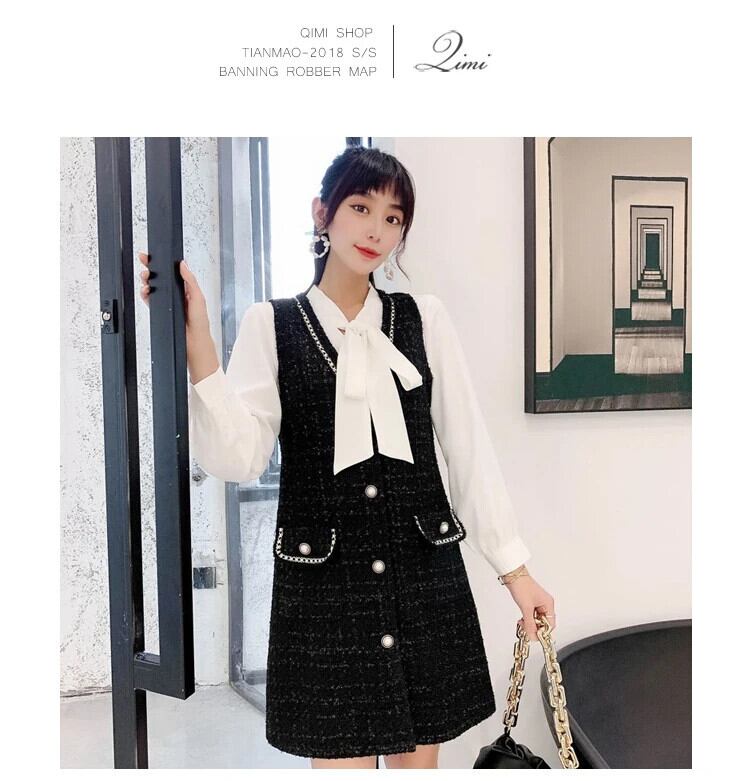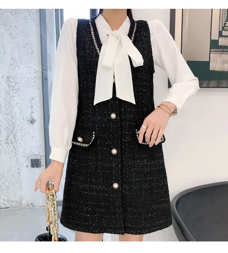春秋ツイード A ライン気質ベスト香りスタイルドレス スプリング 春物 Aライン