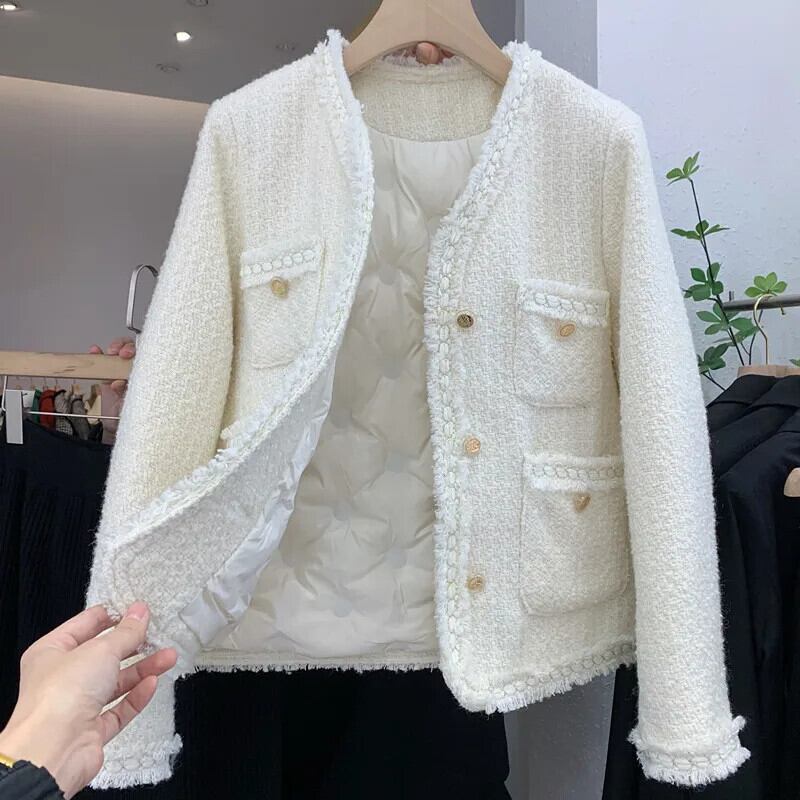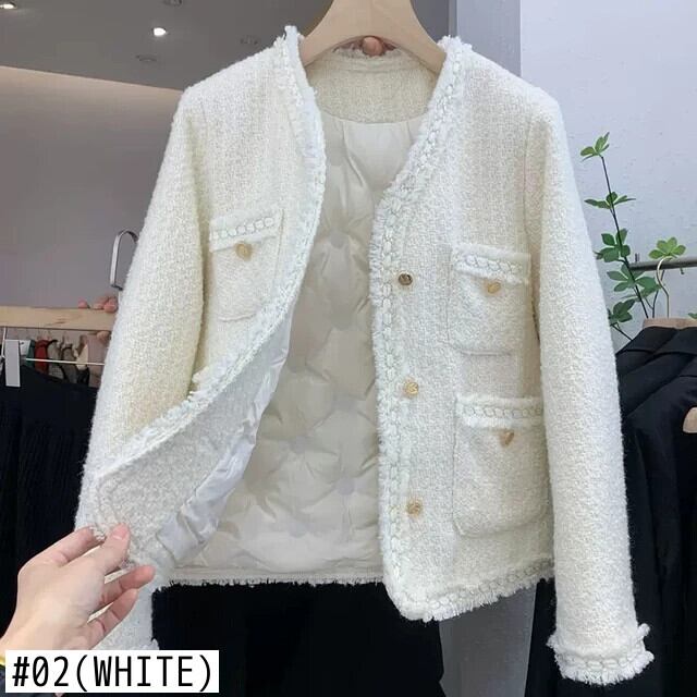 冬香り白黒ダウン断熱インナー厚手ツイードコートジャケット ホワイト ブラック ウィンター 冬物