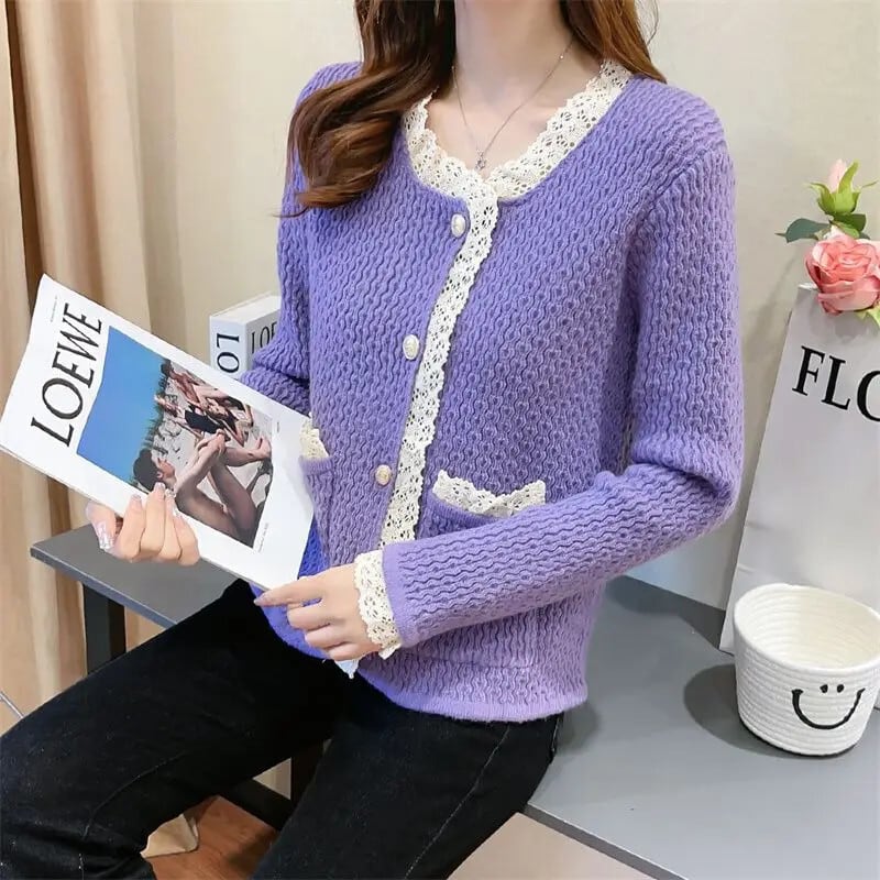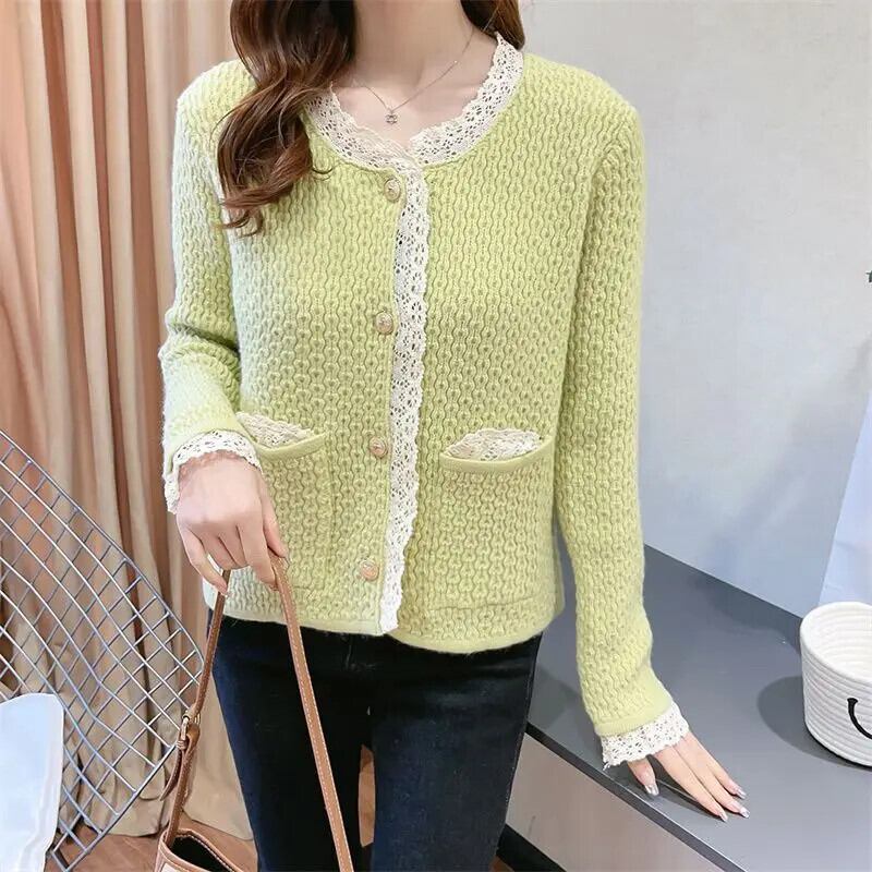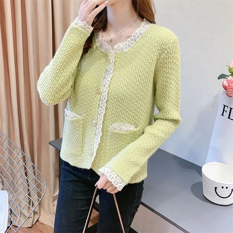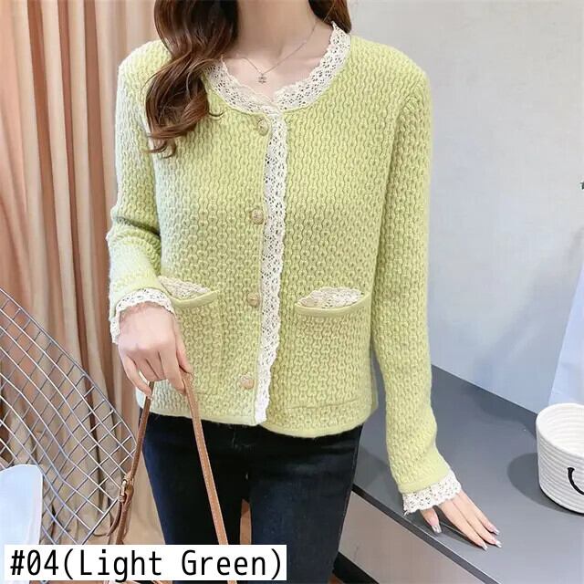 レディース春秋レースカーディガンシングルブレストセーター スプリング 春物 オータム 秋物