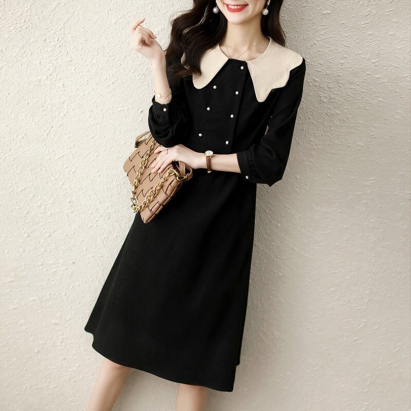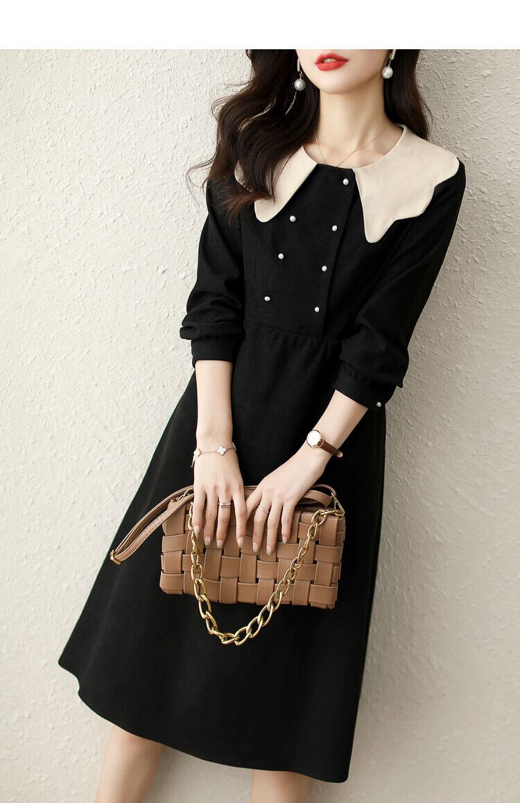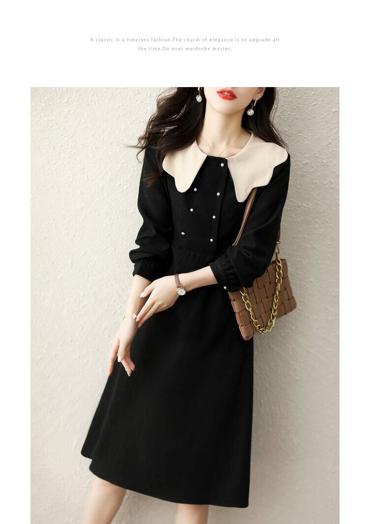 秋冬コントラストレースドールネックダブルブレストコーデュロイAラインドレス ウィンター 冬物
