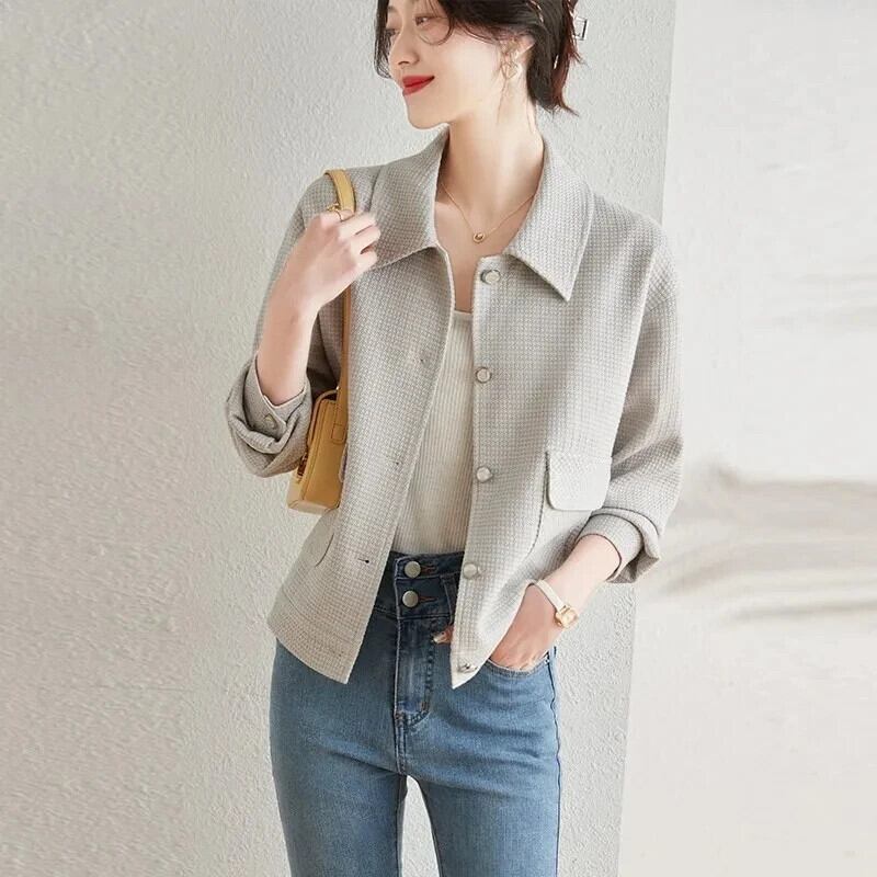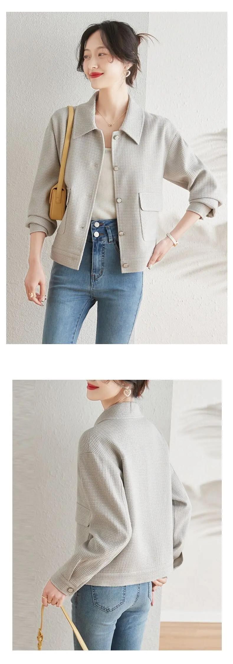 春秋ストレートターンカラージャケット粗いウールシングルブレストシンプルスリムフィットレディースコート スプリング 春物 オータム 秋物