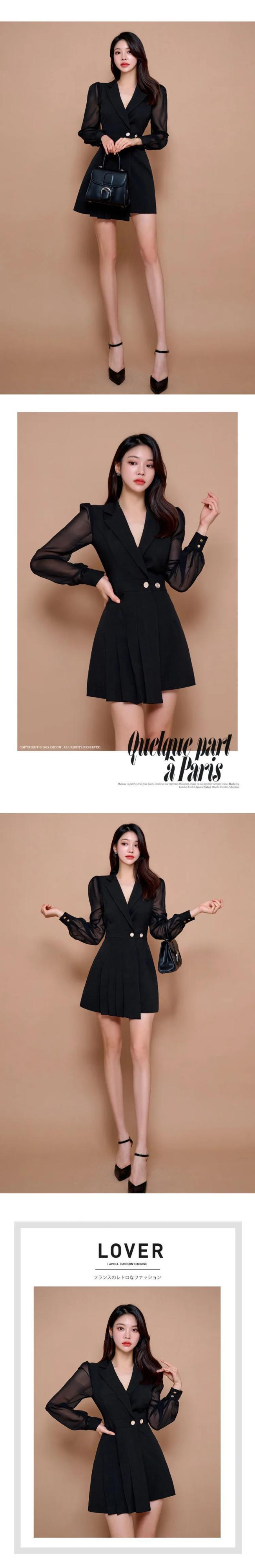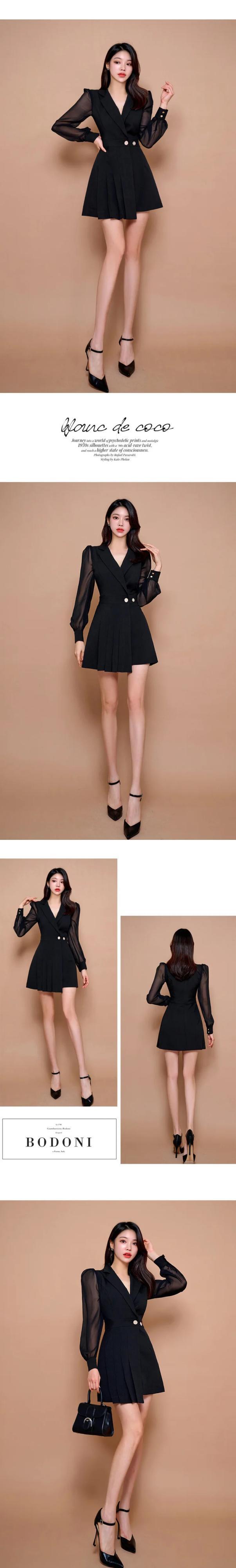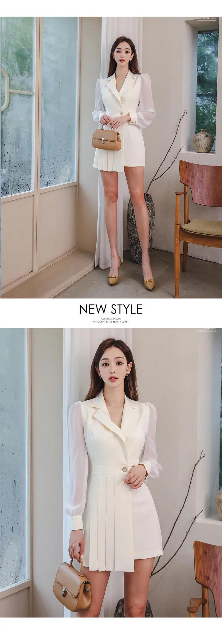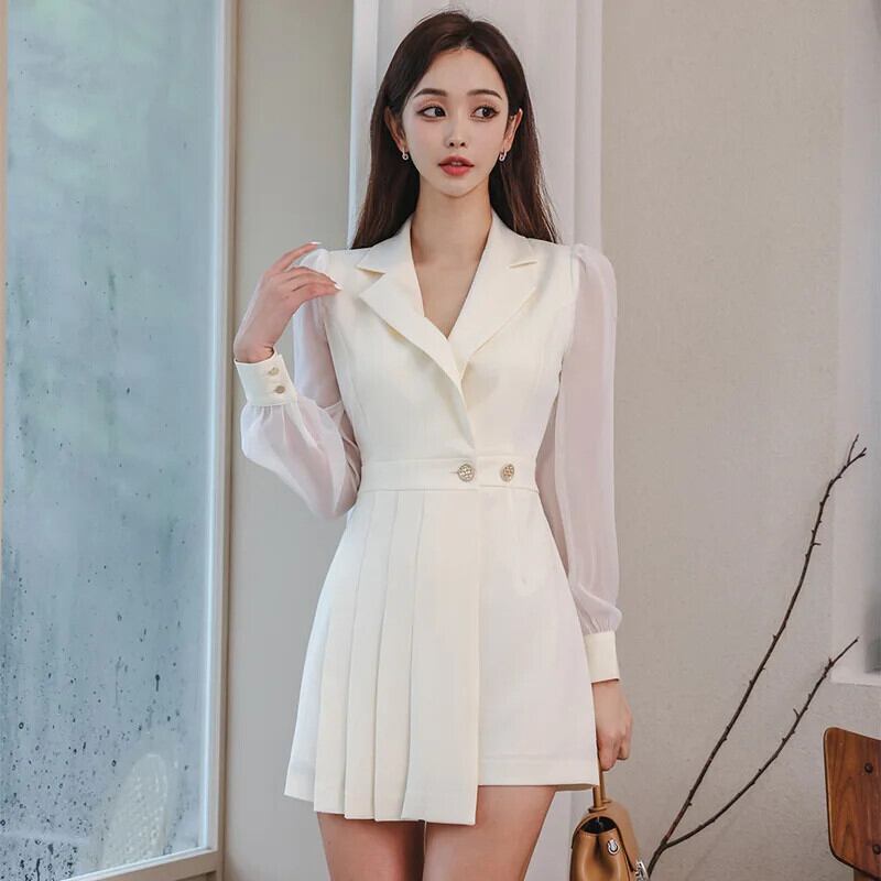 レディース 春スタイル スリム フィット プリーツ スーツ カラー ドレス スプリング 春物