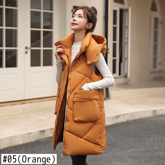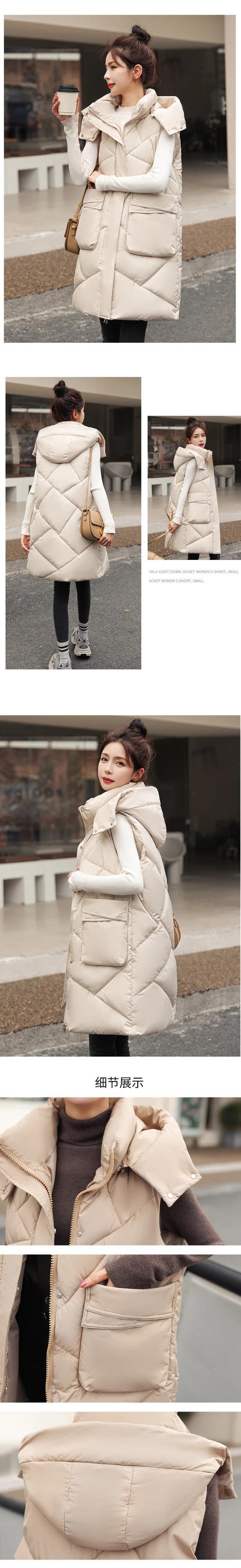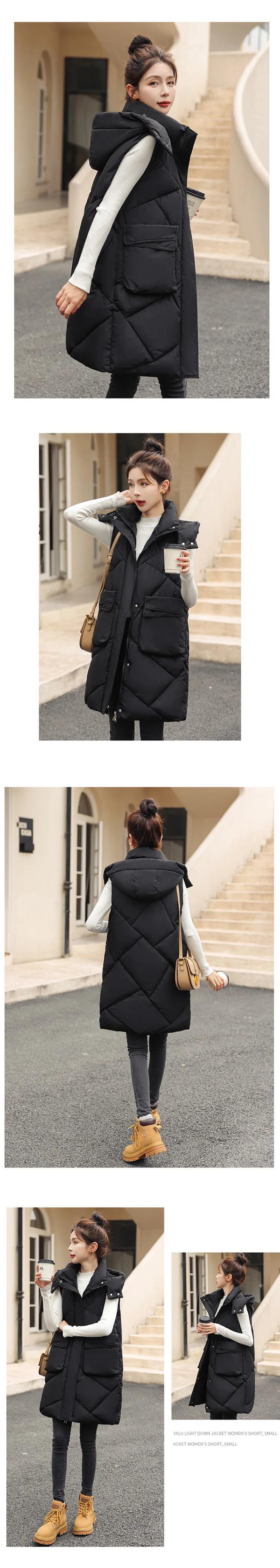 冬ロングポケット綿ベスト暖かい厚いフード付き冬コートスリムチョッキ コットン ウィンター 冬物