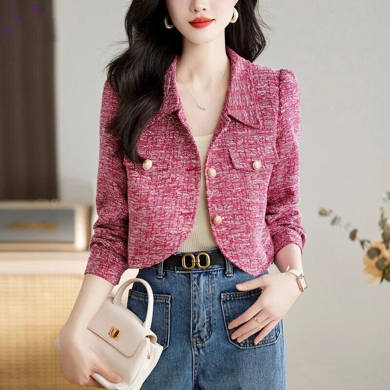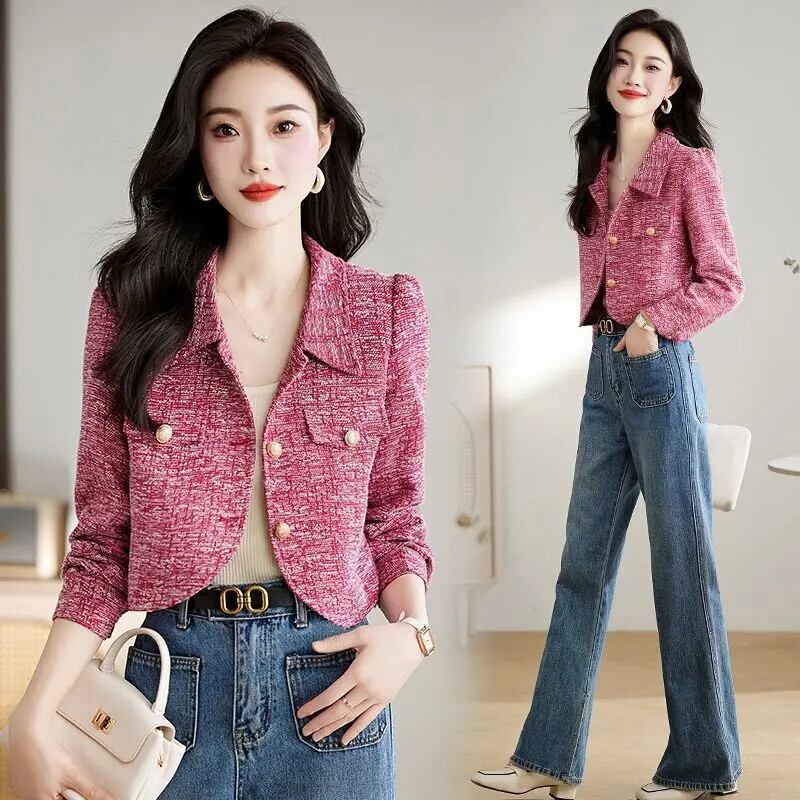 春秋香りラフツイードコートフランス高級緑赤ジャケット レッド スプリング 春物 オータム 秋物 グリーン