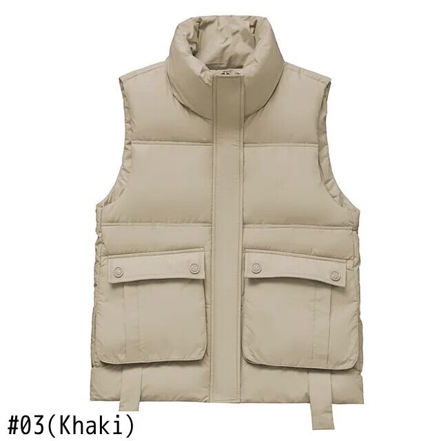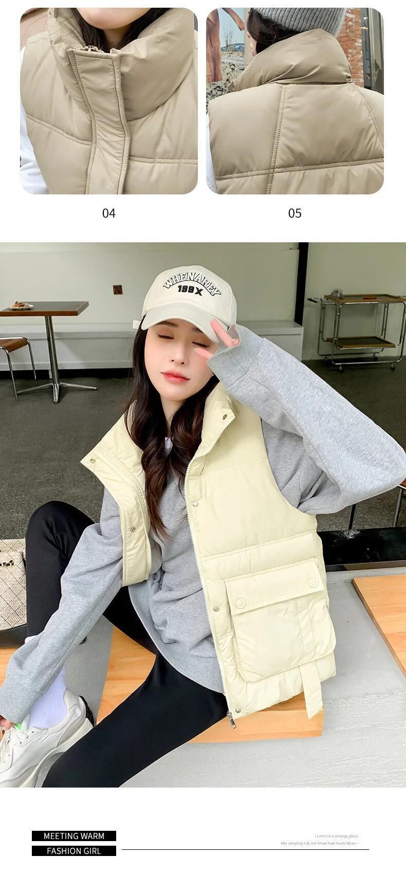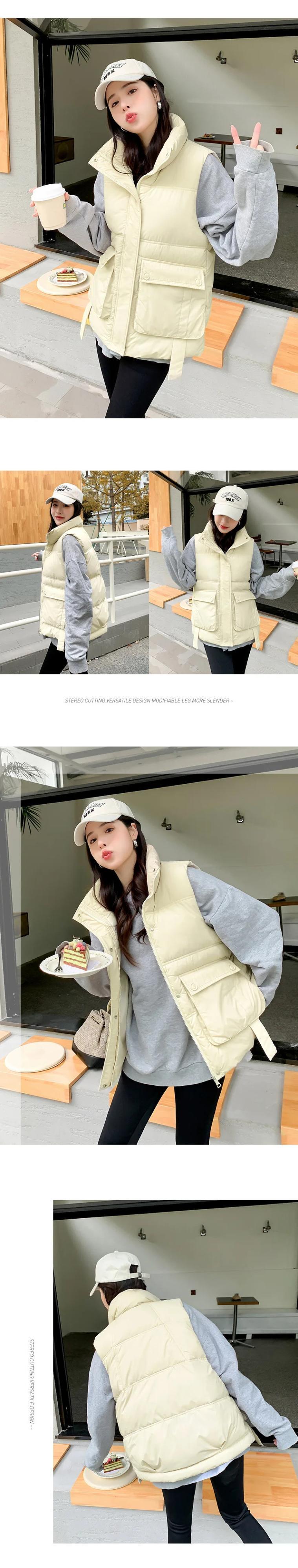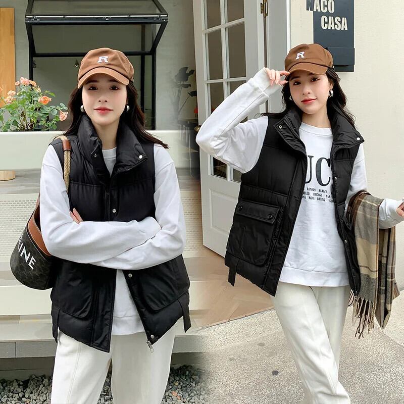 ダウンコットンベストコートスタンドネックルーズポケットタンクトップを着て暖かいチョッキ