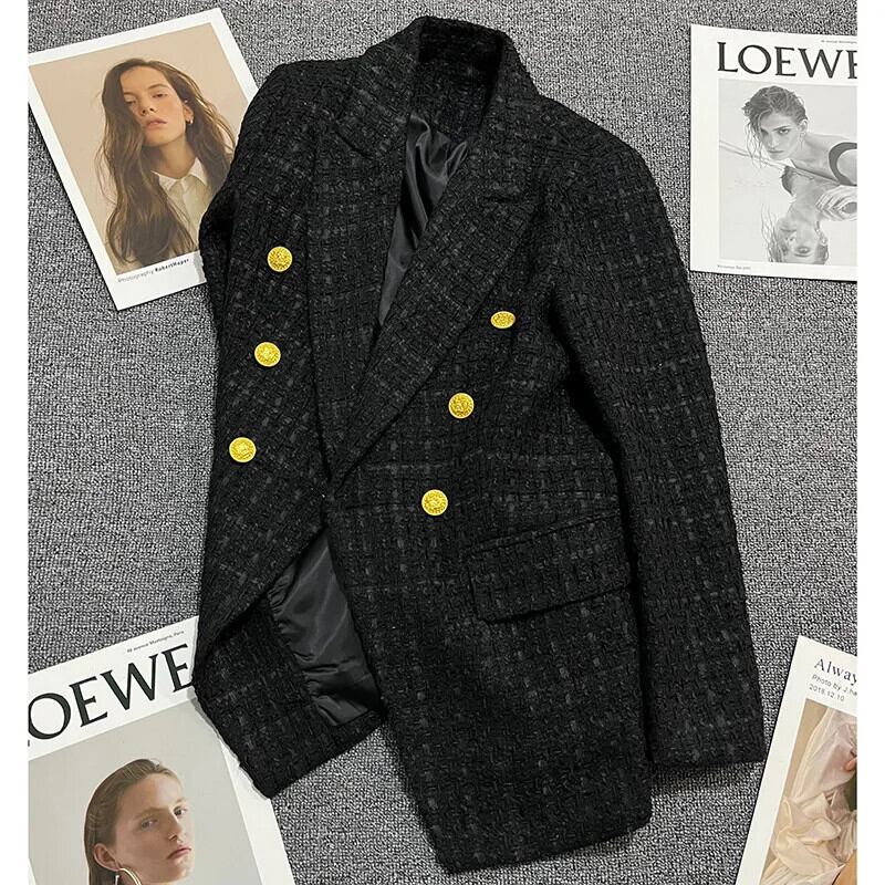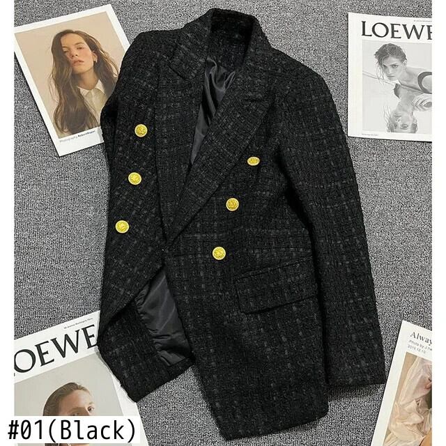秋ダブルブレスト ブリティッシュ スーツ コート ブラック アウト ルーズ ブレザー オータム 秋物