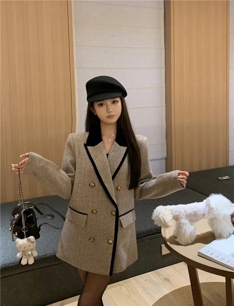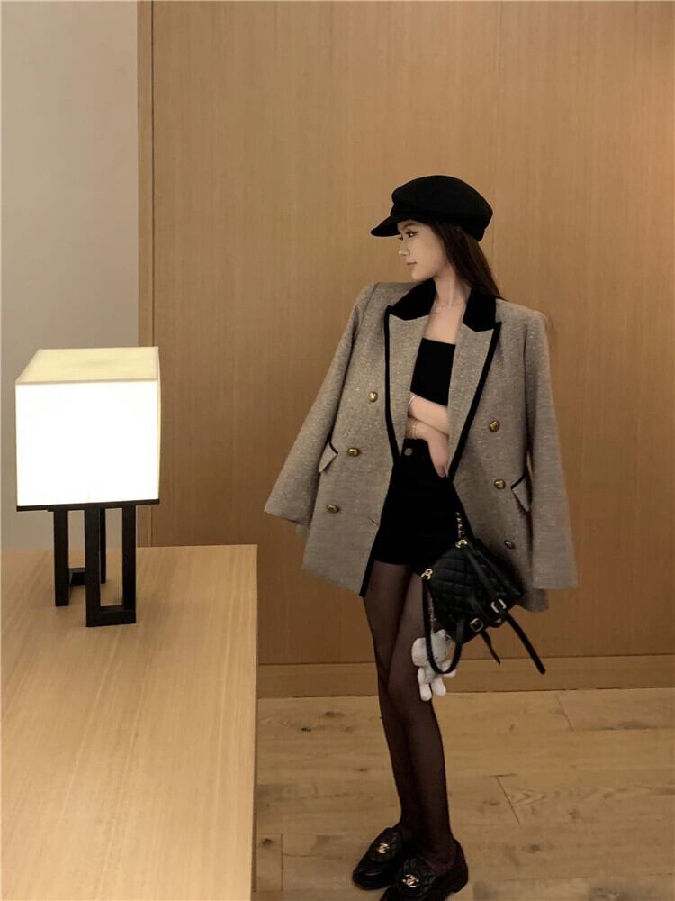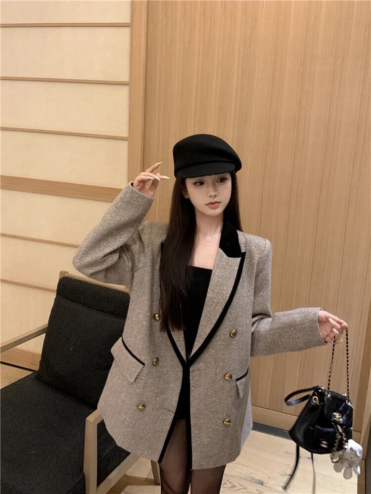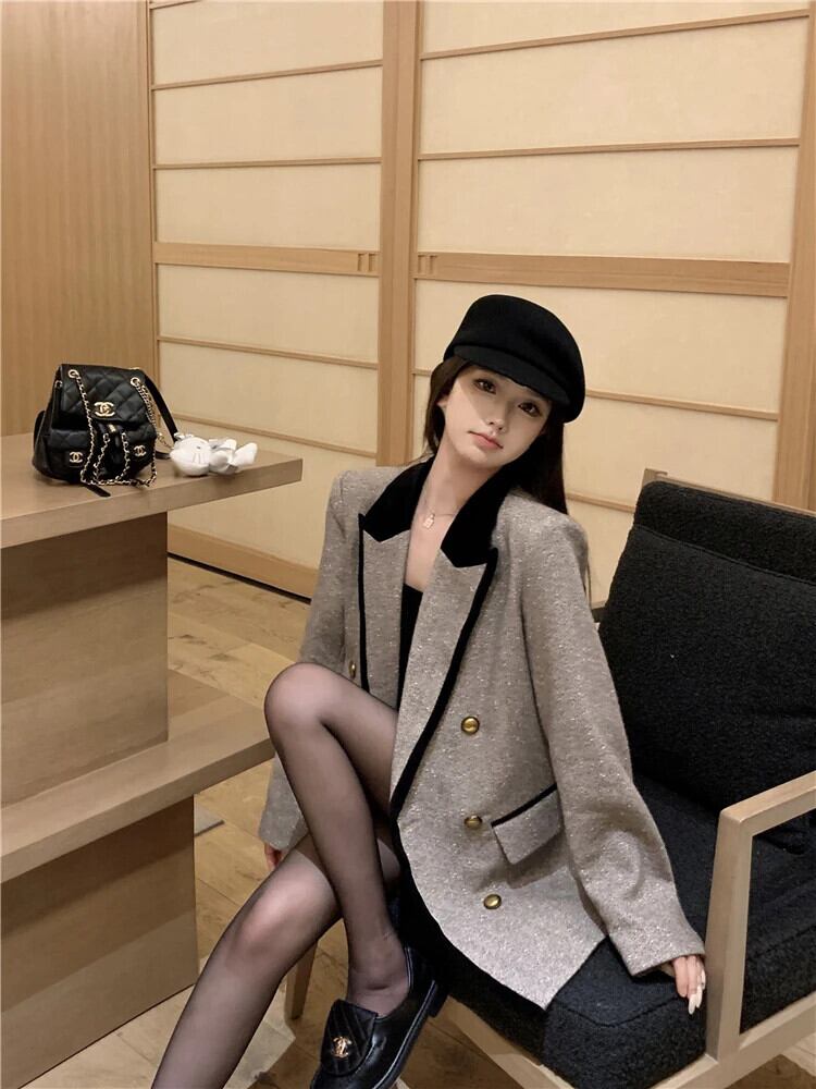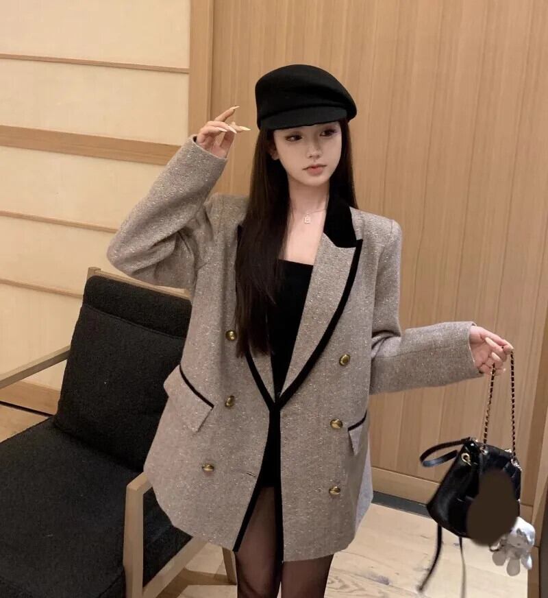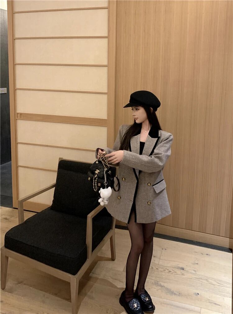 秋冬スーツ ウール ジャケット グレー ラペル ミッドレングス ブレザー オータム 秋物 ウィンター 冬物