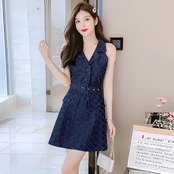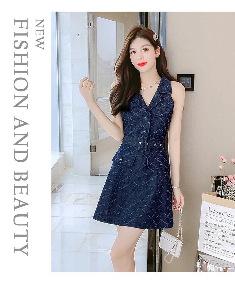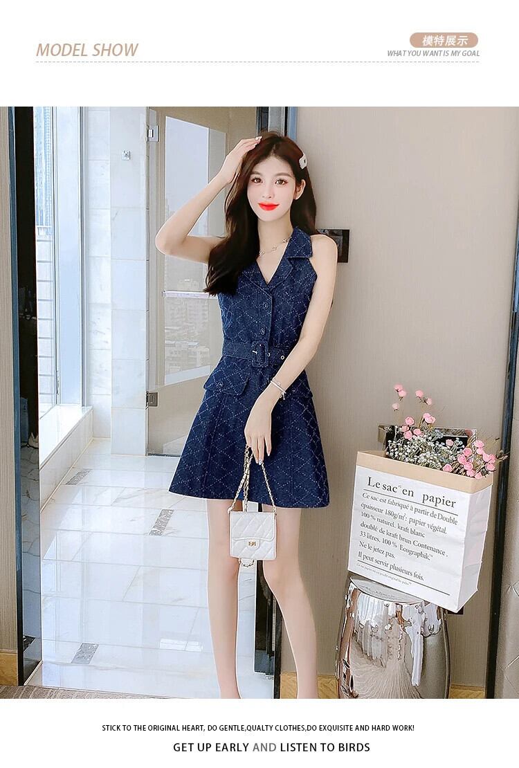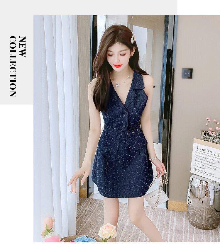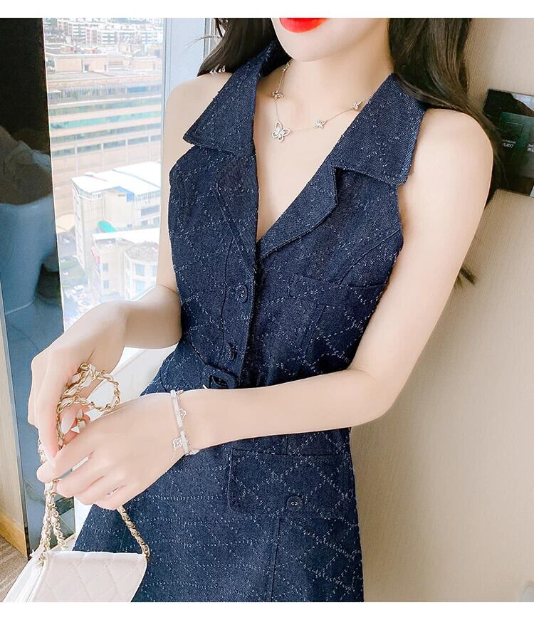 レディースサマースイートノースリーブハンギングネックデニムドレス 大人ガーリー スウィート キュート カジュアル 夏物