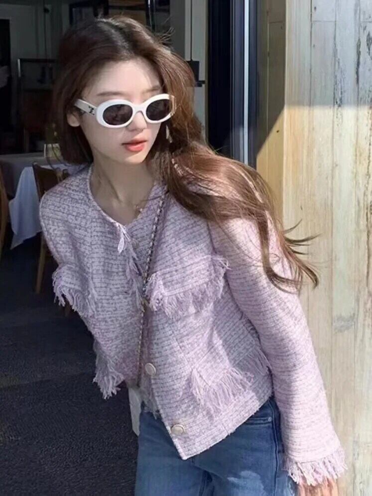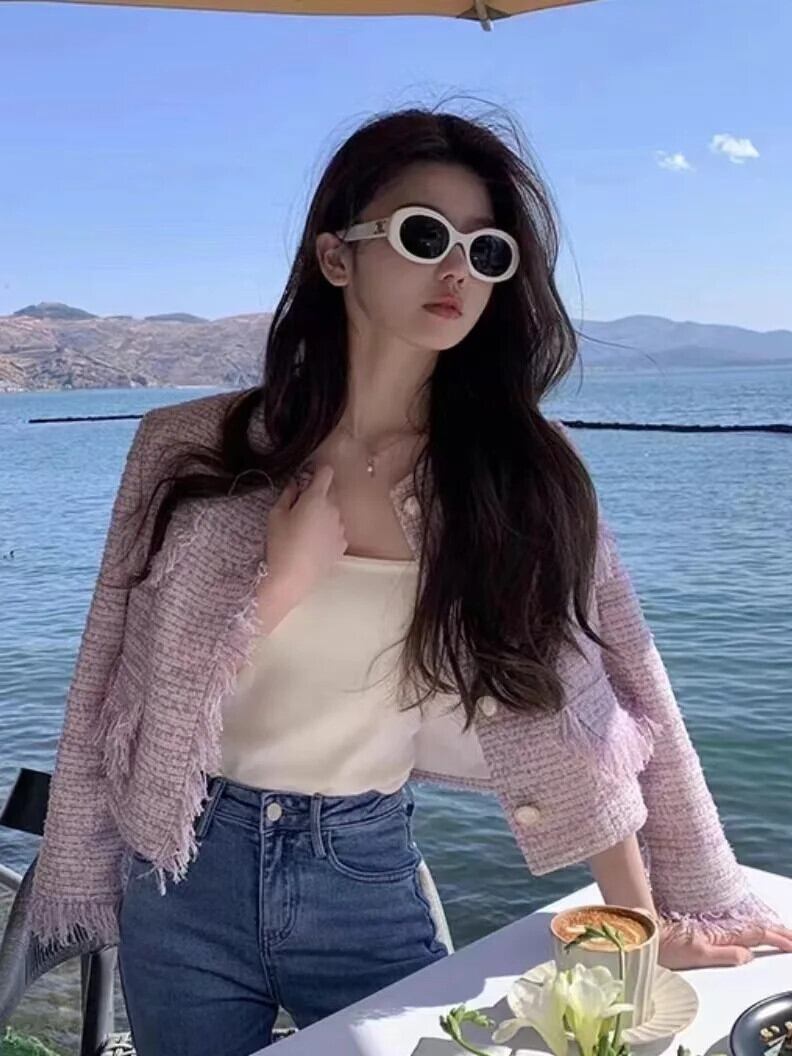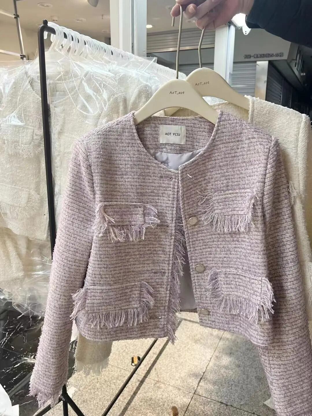 レディース 春香りコート ウール クロップド ジャケット ショート アウター スプリング 春物