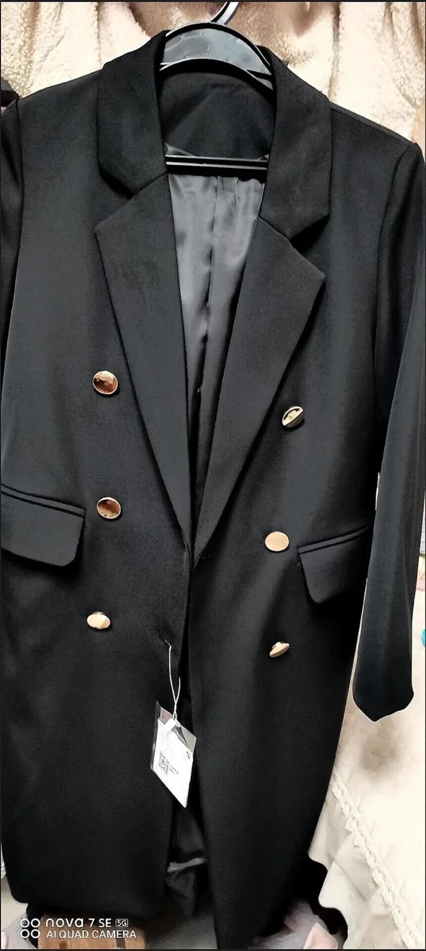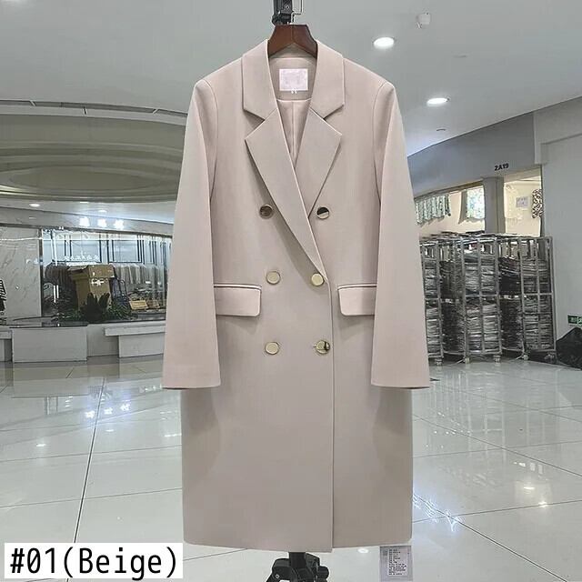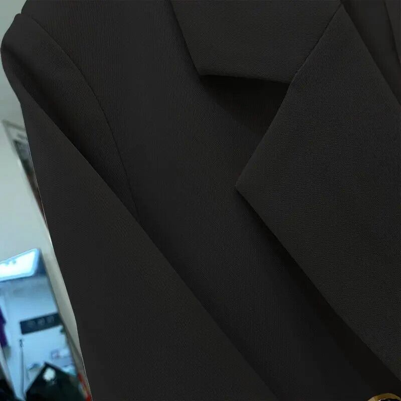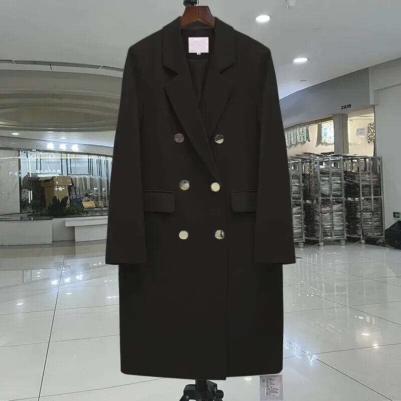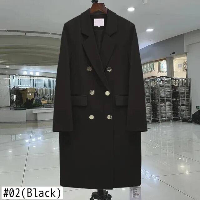 春黒ミディアムロングスーツコートフェミニンスタイルブレザートレンドジャケット ブラック スプリング 春物