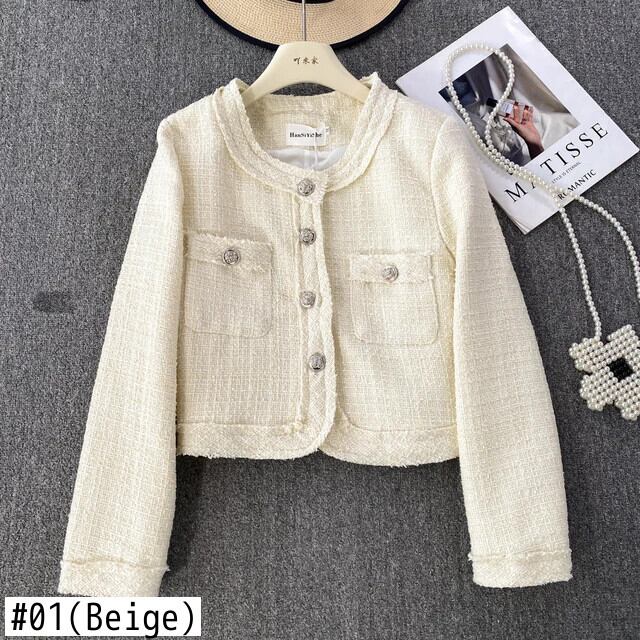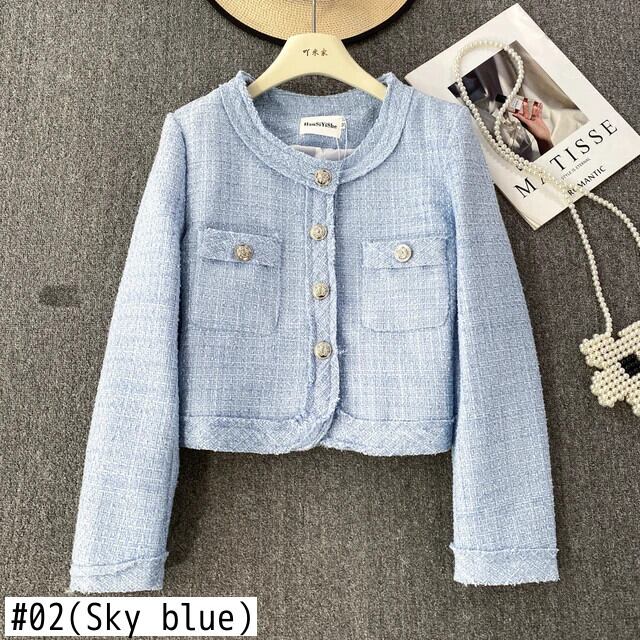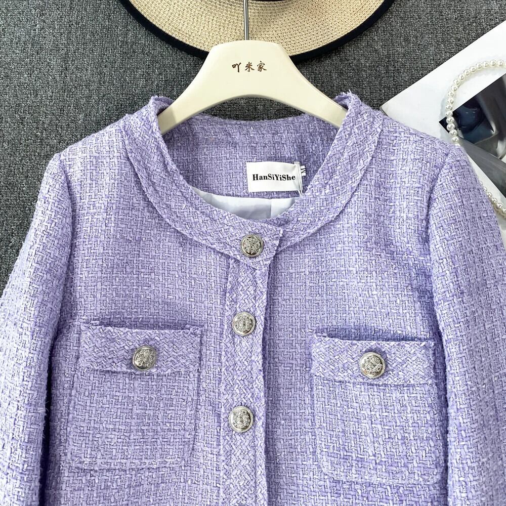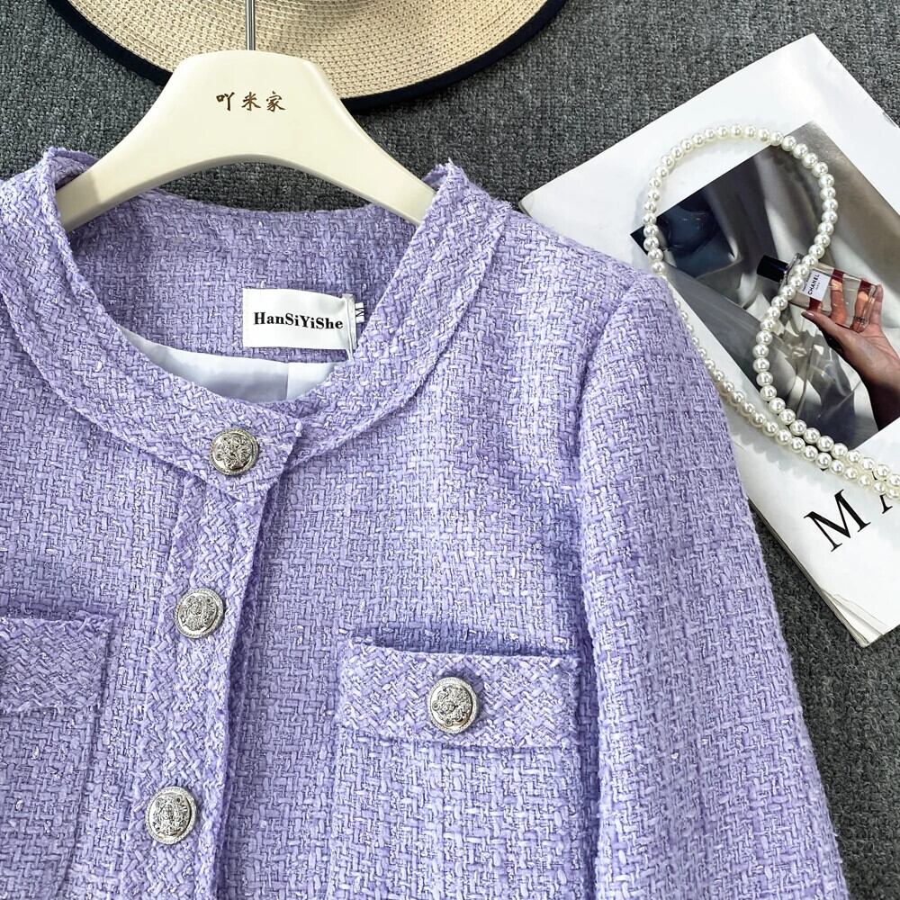 秋/冬香り良いスタイルセレブ気質長袖ラウンドネックツイードコートジャケット Jaqueta ロング オータム 秋物 ウィンター 冬物 Oネック