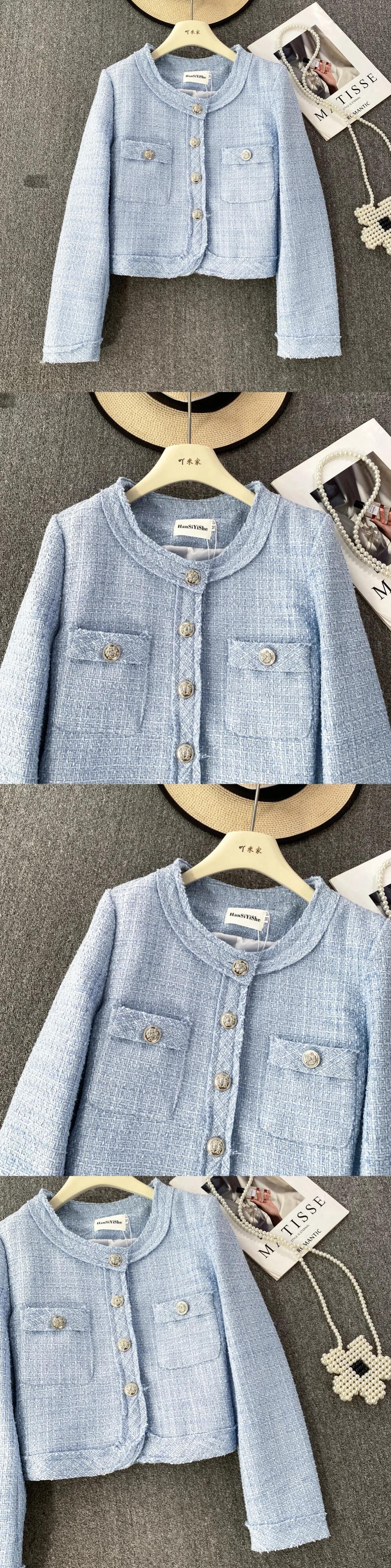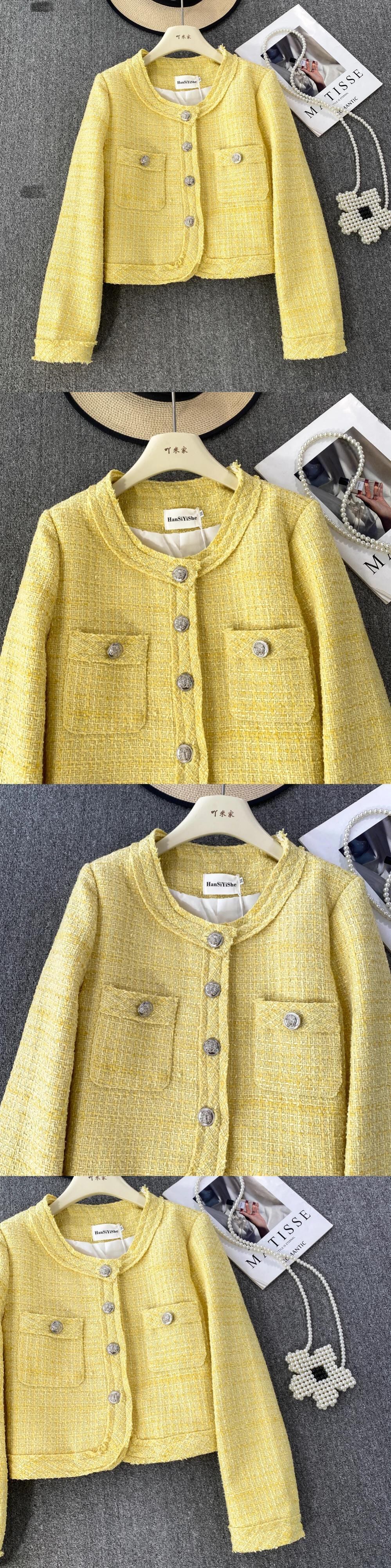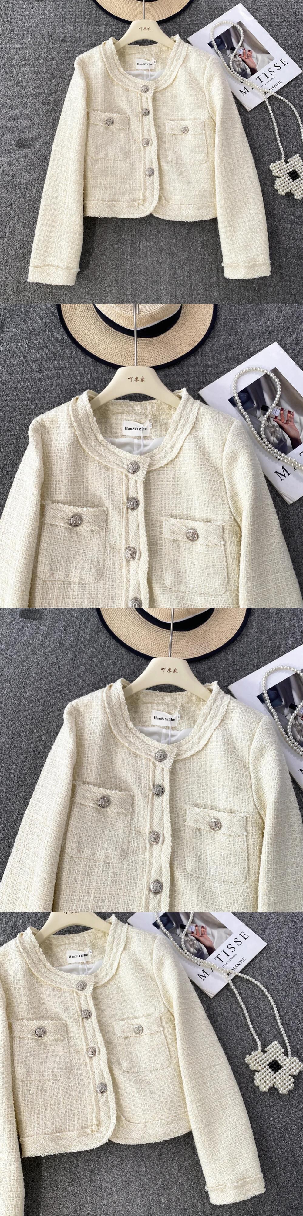 秋/冬香り良いスタイルセレブ気質長袖ラウンドネックツイードコートジャケット Jaqueta ロング オータム 秋物 ウィンター 冬物 Oネック