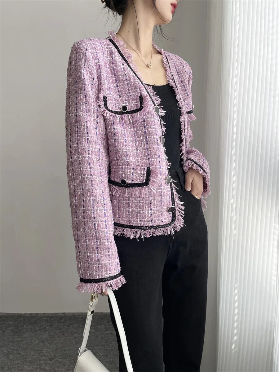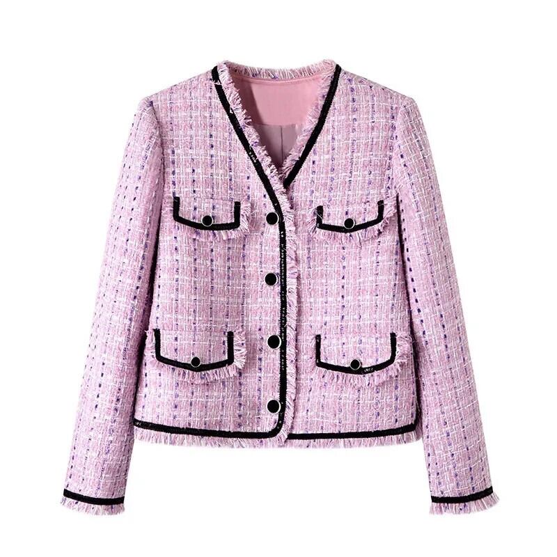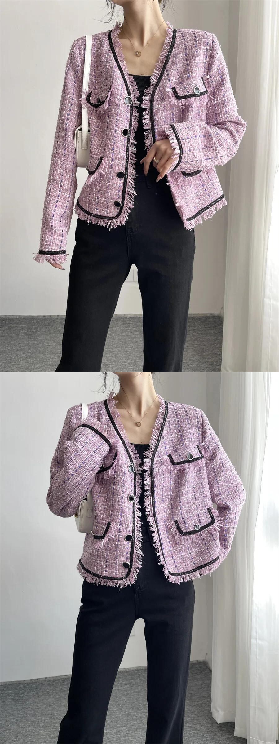 春通勤気質紫 V ネック コートジャケット スプリング 春物 Vネック パープル