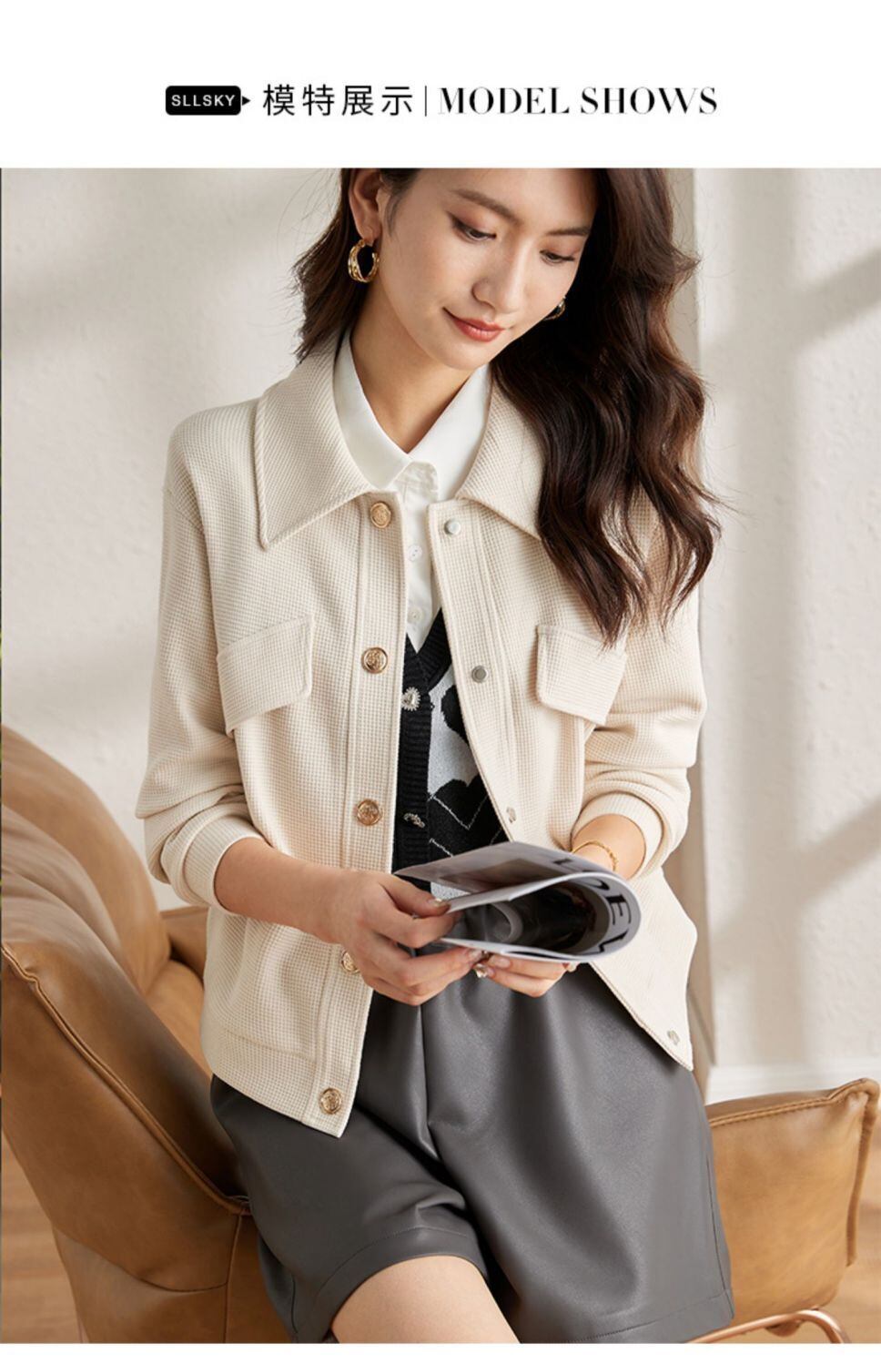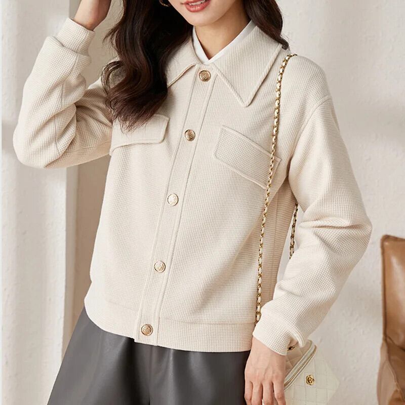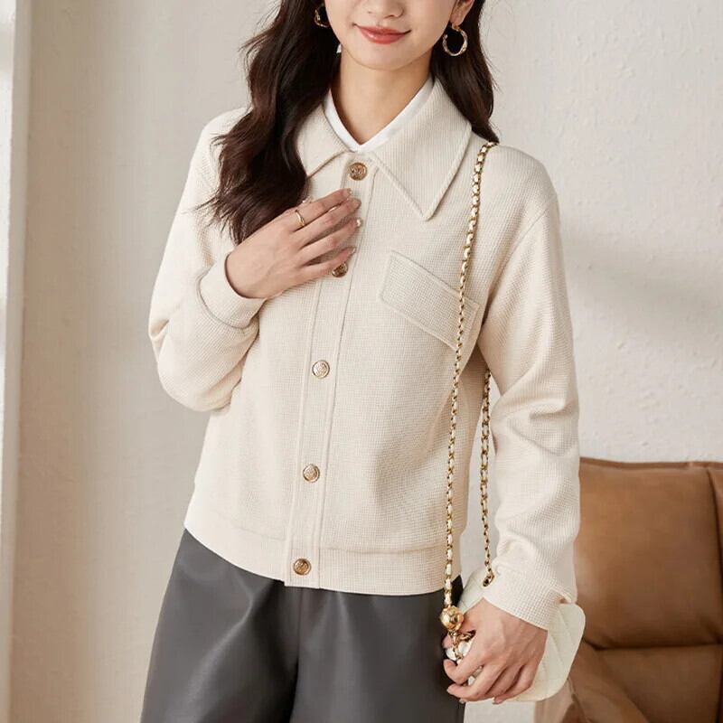 アプリコットブラウン香りコートレディースショート春秋ターンカラージャケット スプリング 春物 オータム 秋物