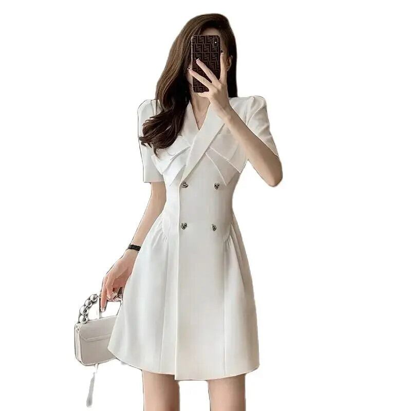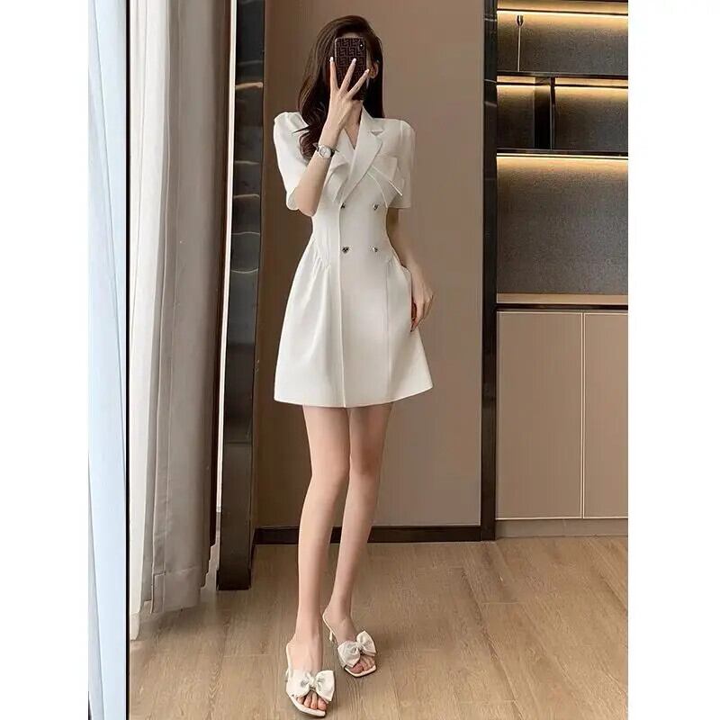 夏バブルスリーブラップウエストスタイル蝶ネクタイスーツ A ラインドレス リボン サマー 夏物 Aライン
