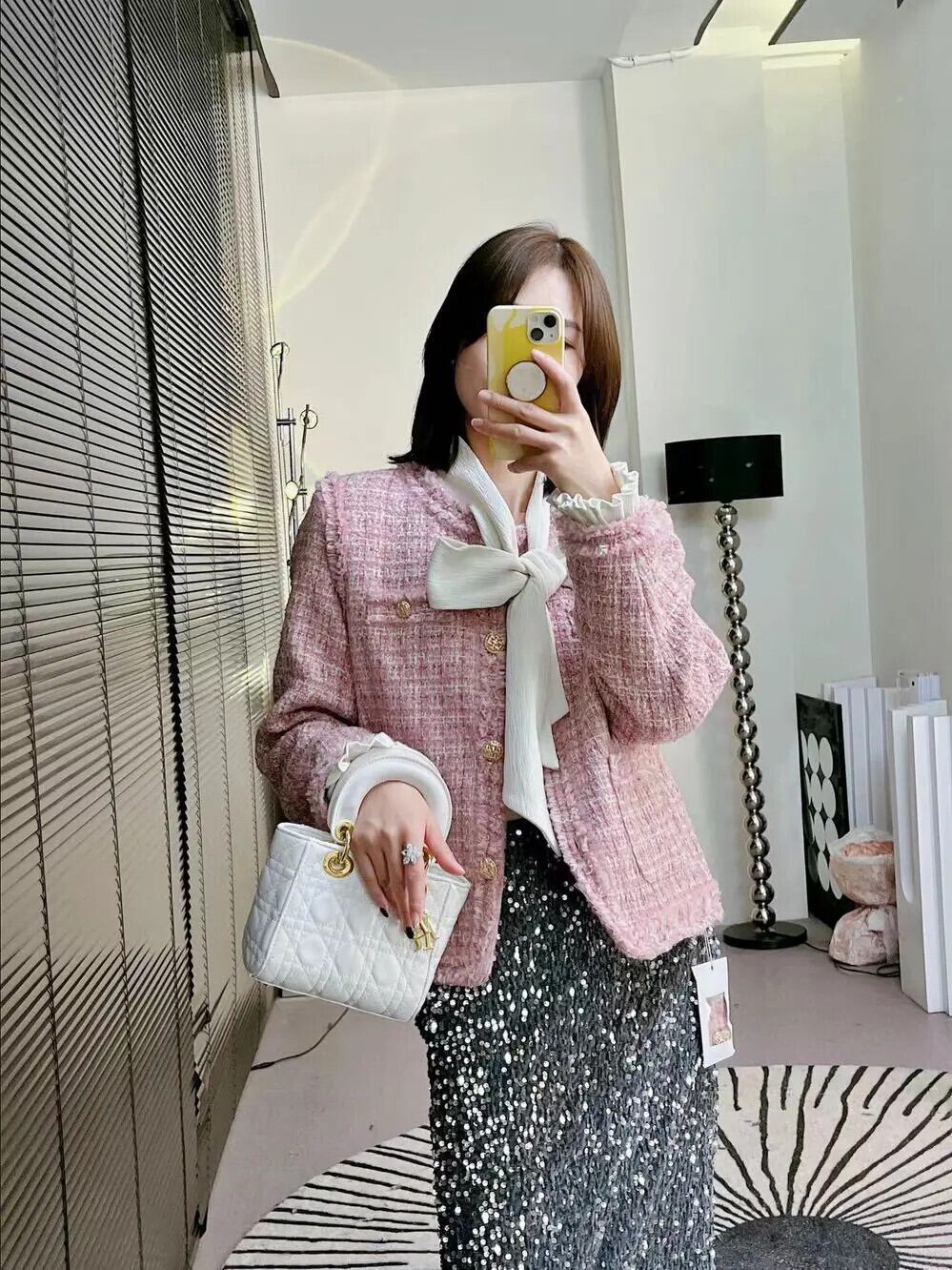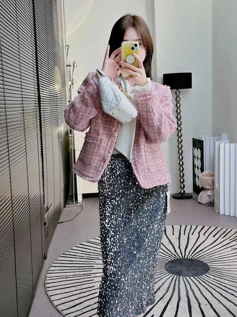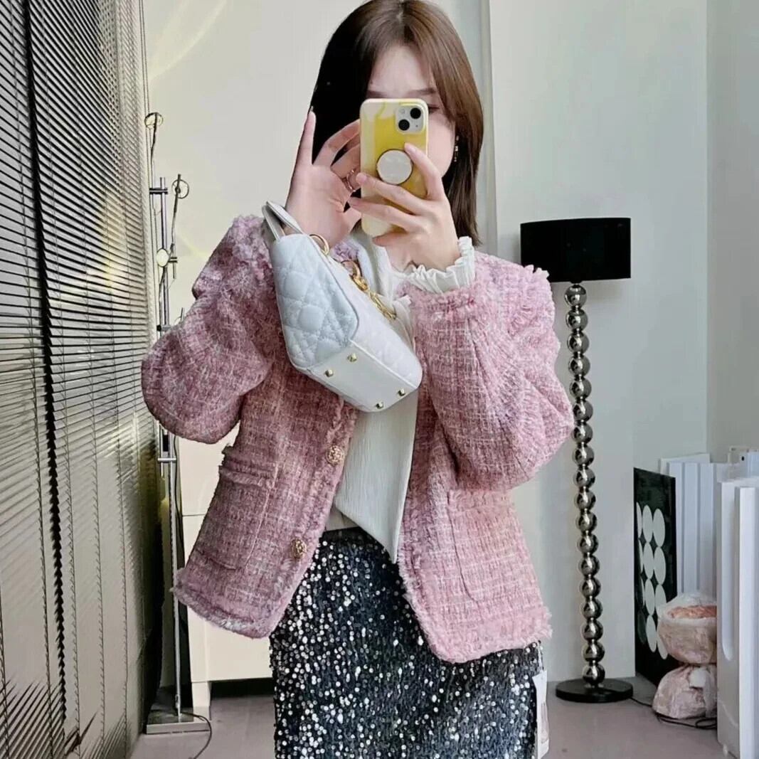 秋春シックツイードショートコートシングルブレスト長袖ストリートジャケット ロング スプリング 春物 オータム 秋物