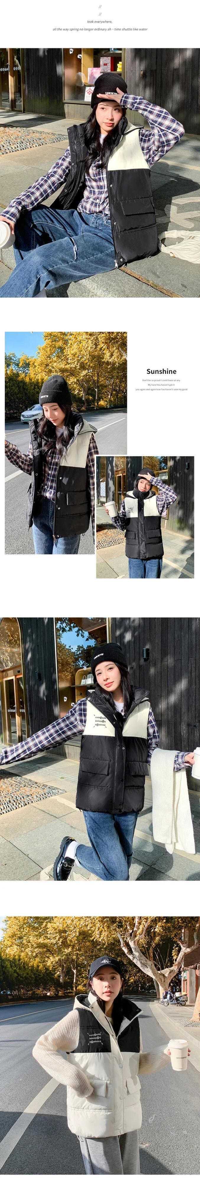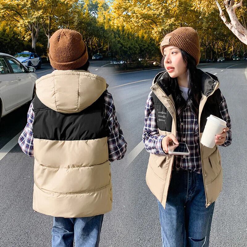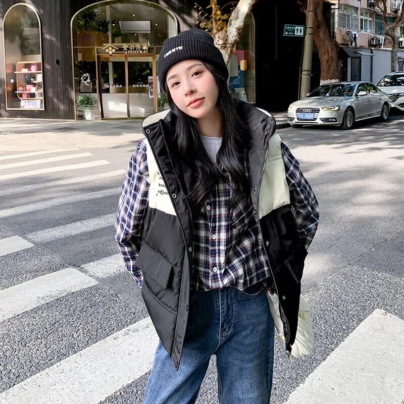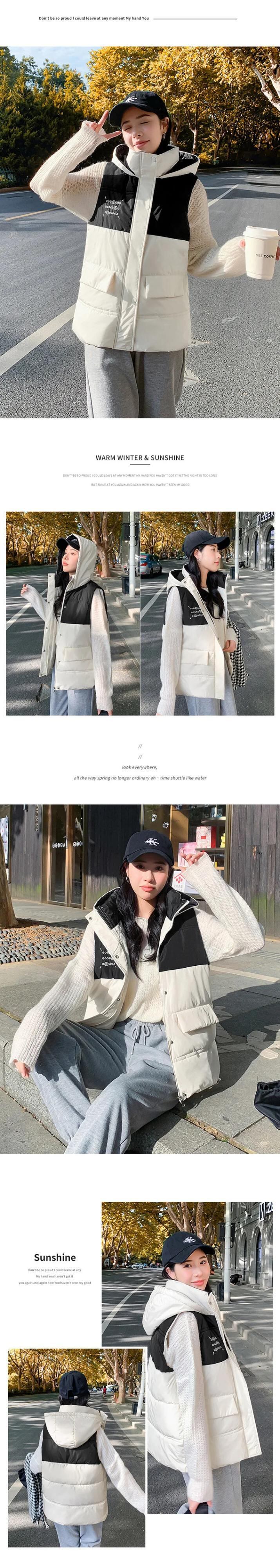 ベスト レディース 春、秋冬 コントラストカラーパネル 厚く暖かいコート ショートダウン コットン タンクトップ チョッキ レッド スプリング 春物 オータム 秋物 ウィンター 冬物
