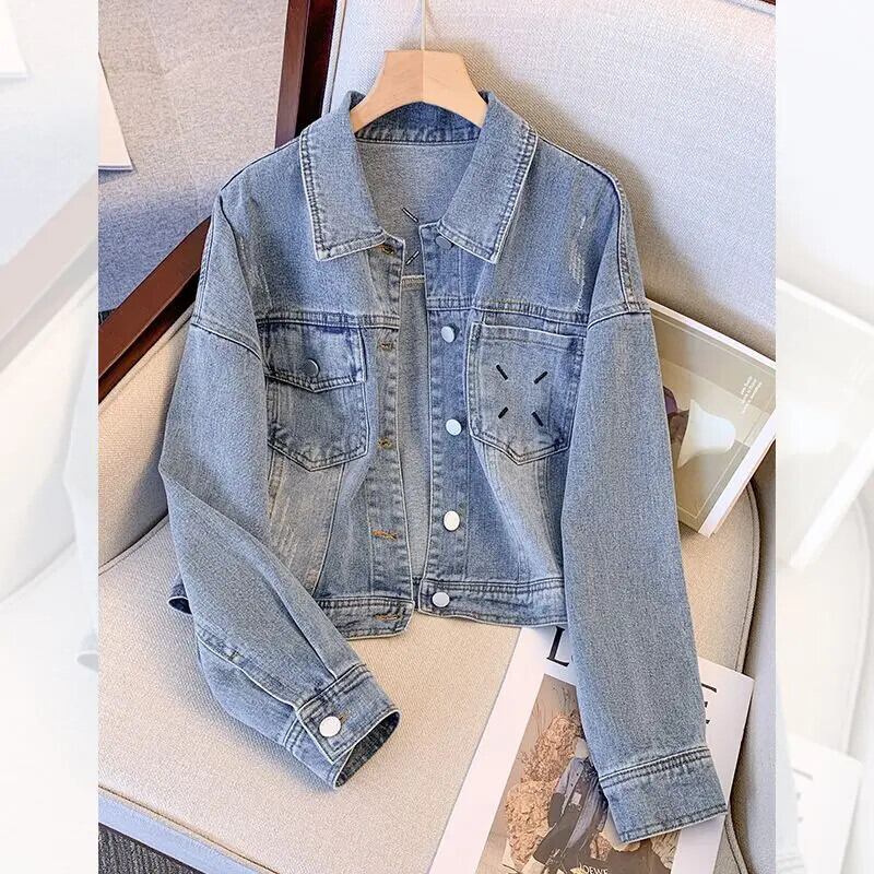レディース春秋多用途ショートジャケットシックルーズブルーデニムコート スプリング 春物 オータム 秋物