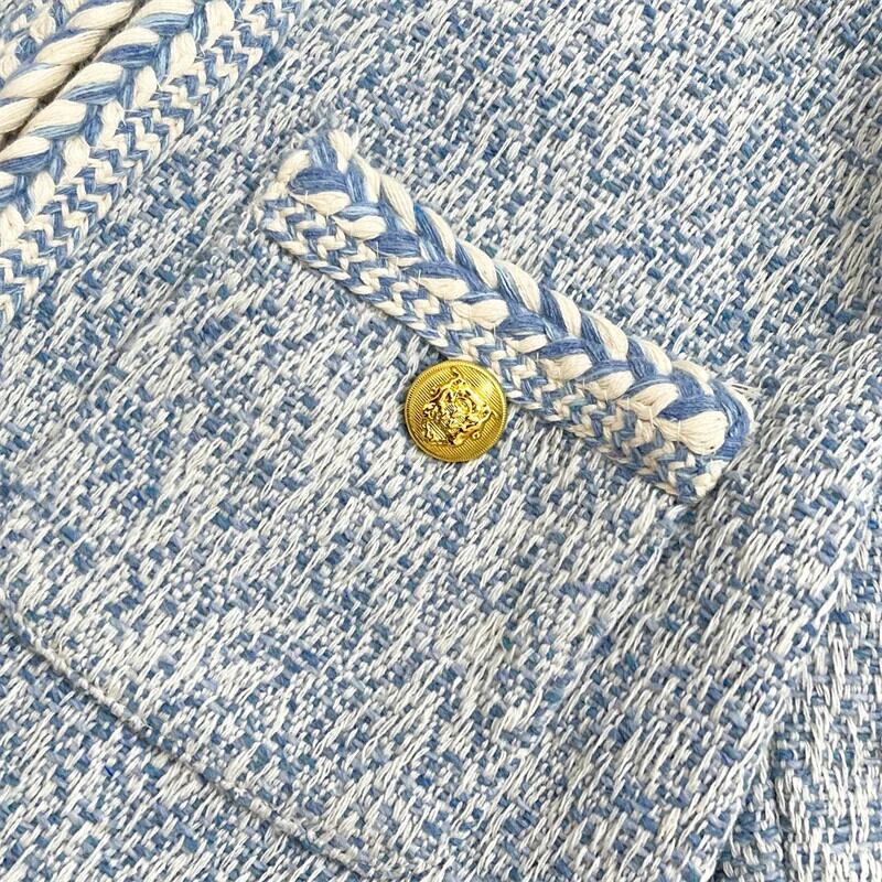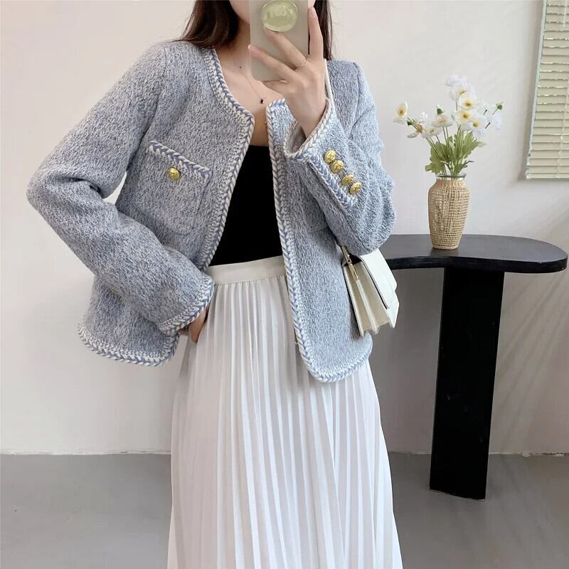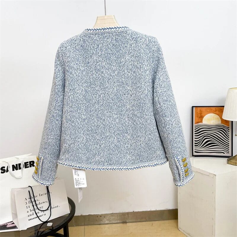 秋冬ツイードジャケットショートブルーコート Casaco Feminino Chaquetas ウィンター 冬物