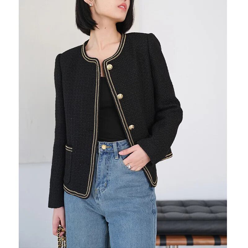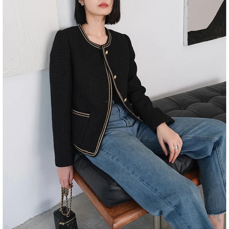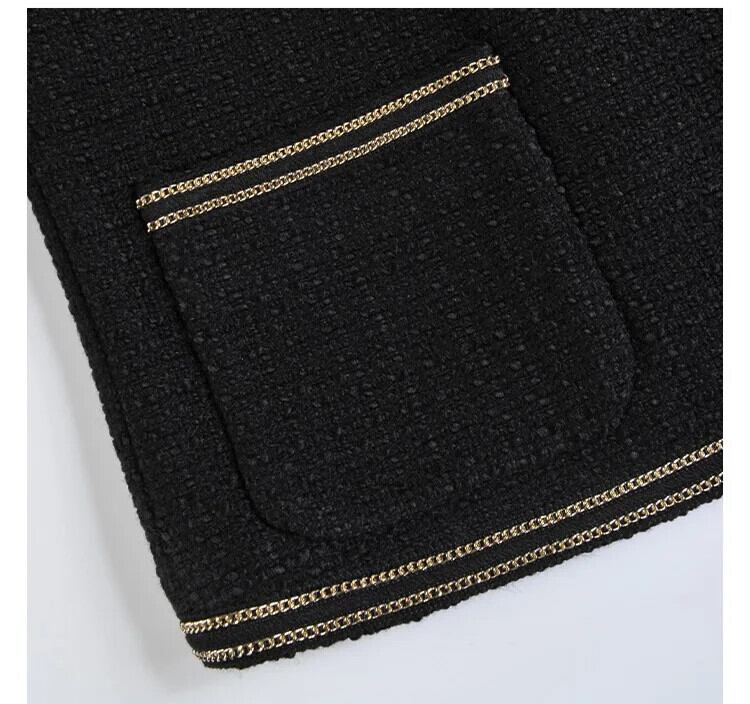 ファンシーダブルチェーンクリックブラックフィット秋ショートスーツジャケット生き抜くブレザー オータム 秋物