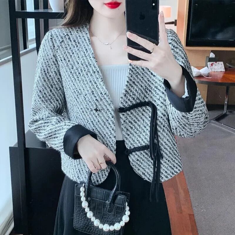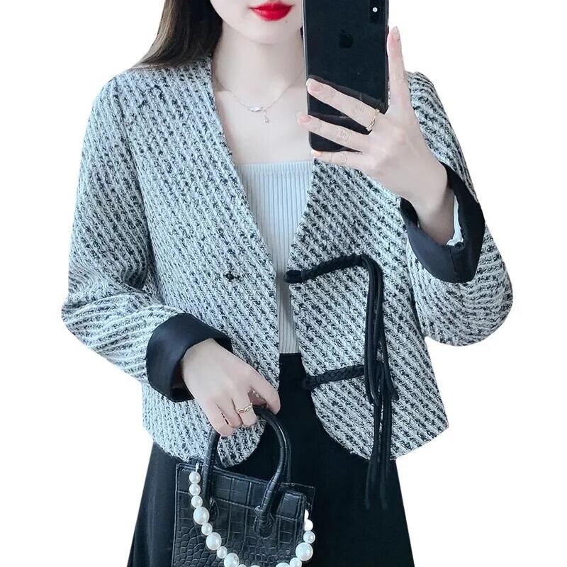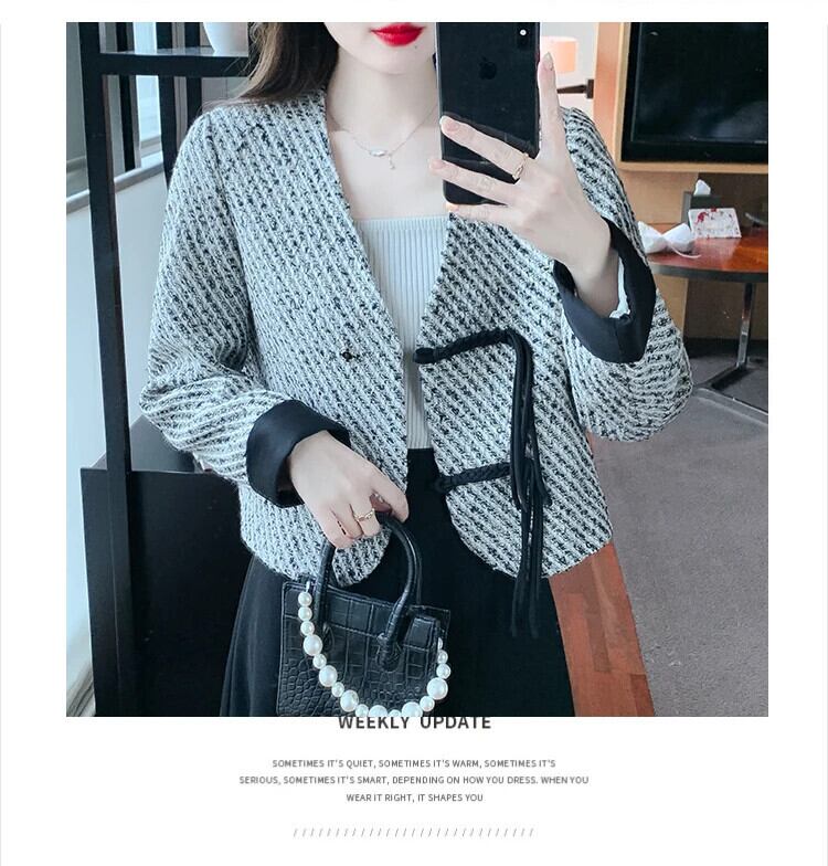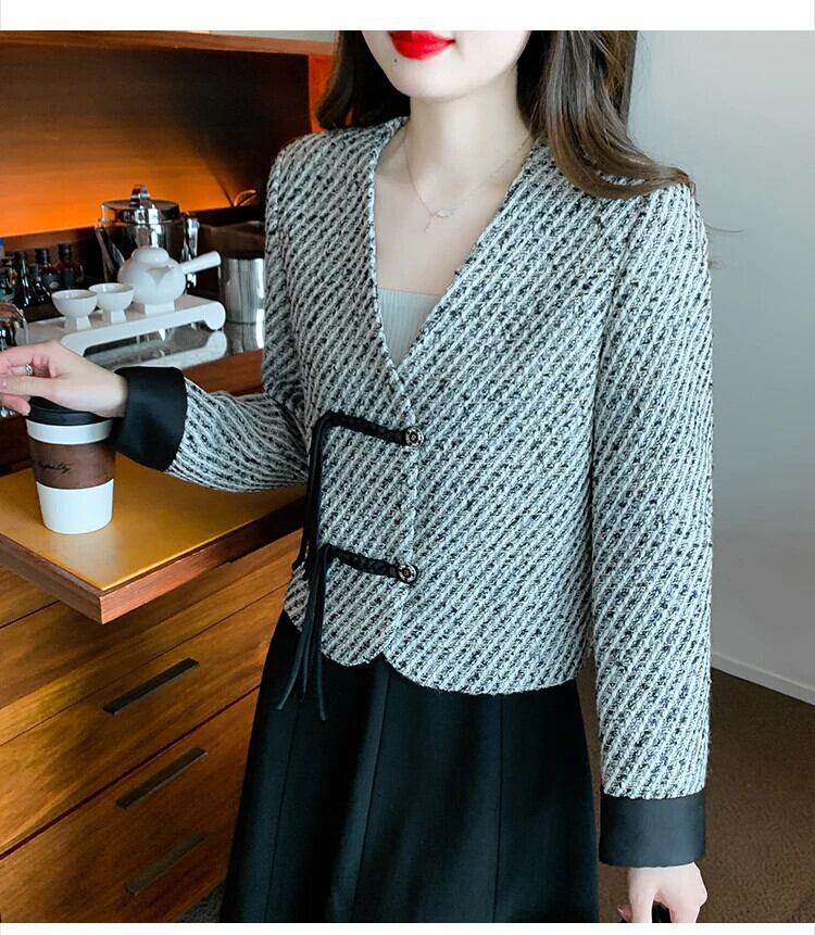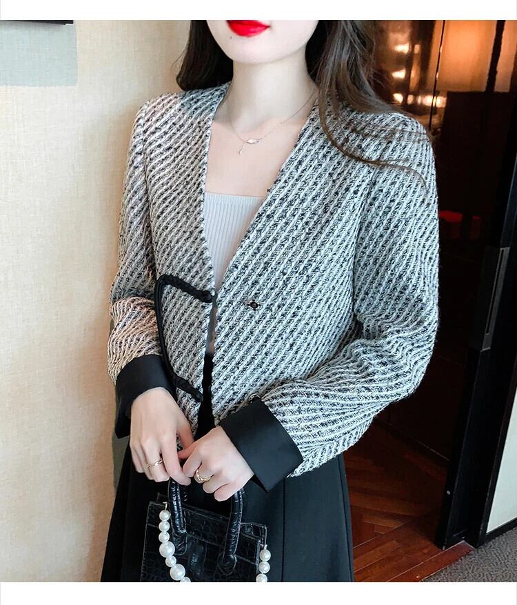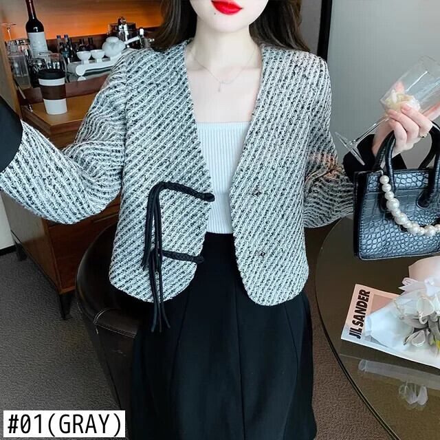 粗ツイード香りジャケット トレンド バックル 秋冬ジャケット Chaquetas オータム 秋物 ウィンター 冬物